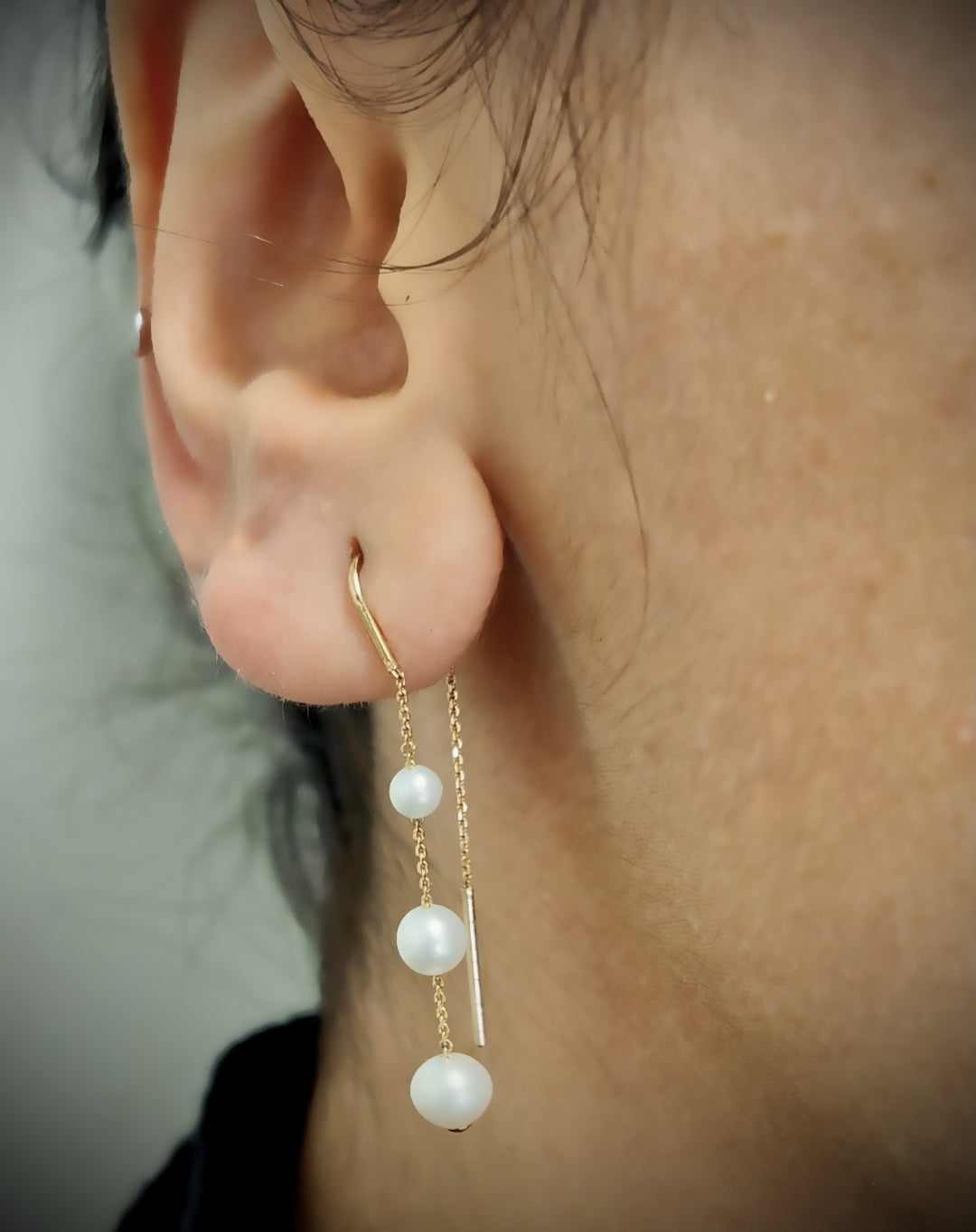 9ct Yellow Gold Thread Pearl Earrings