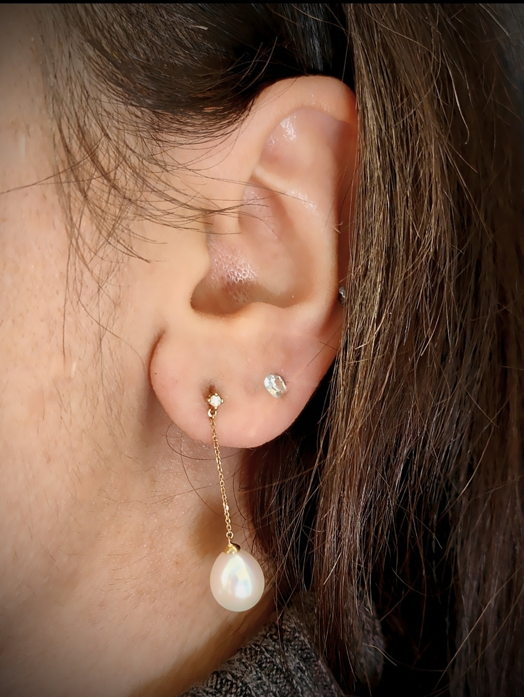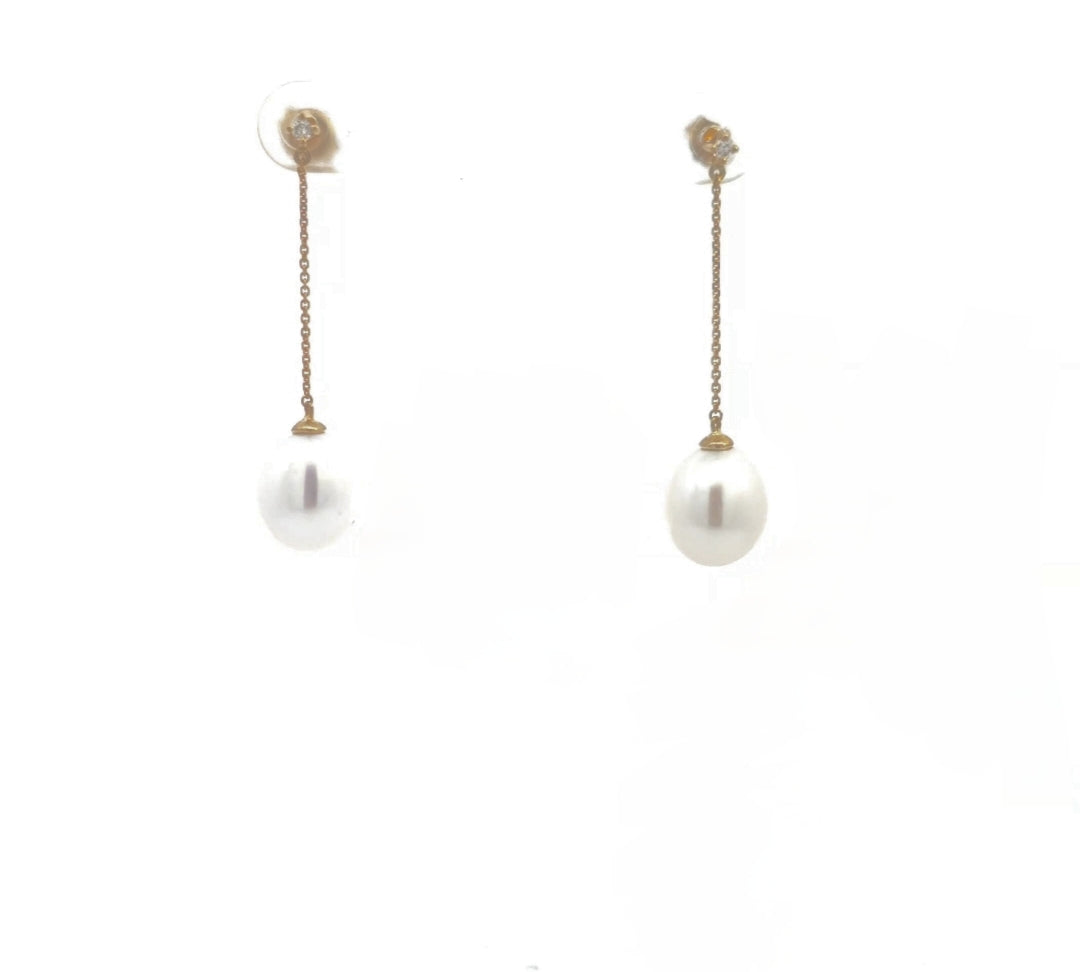 9ct Yellow Gold Hanging Pearl Earrings