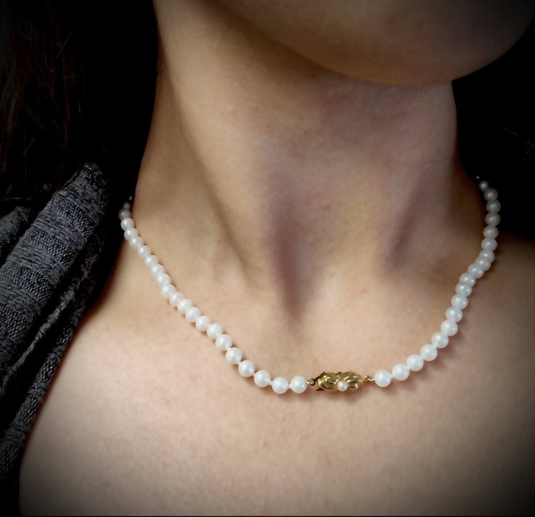 9ct Yellow Gold Akoya Pearl String Necklace