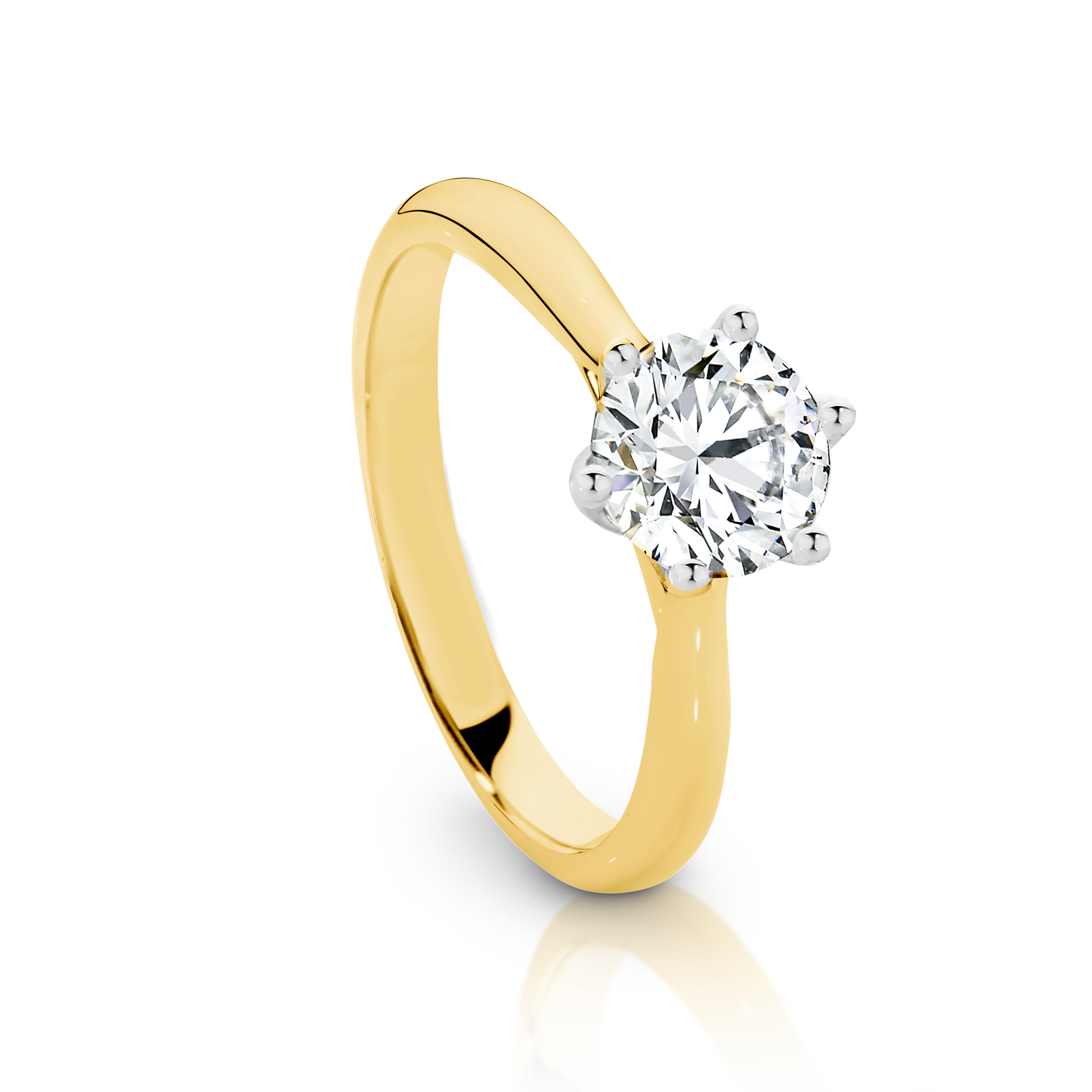 18 carat Yellow Gold 6 claw Solitaire Engagement w/ 1.00ct H/I-I RBC Diamond
