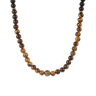 6mm Yellow Tiger Eye & Matt Agate &Ion Plated Gold Stretch Bead Neck Chain