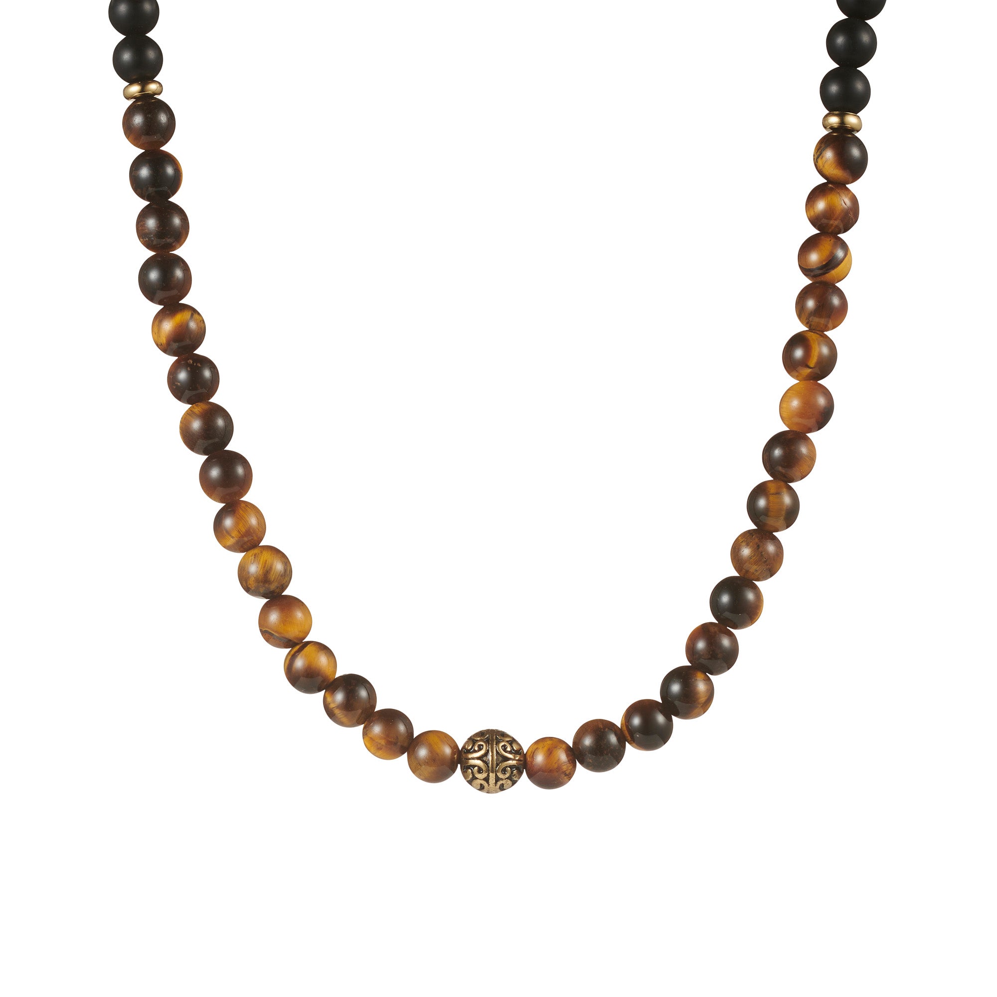 This Cudworth men’s neck chain exudes a relaxed yet sophisticated style. Designed with a 6mm yellow tiger eye and matt agate beads, this piece is elevated with an ion-plated gold stretch bead chain. Perfect for everyday wear or special occasions, it adds a touch of class to any outfit.