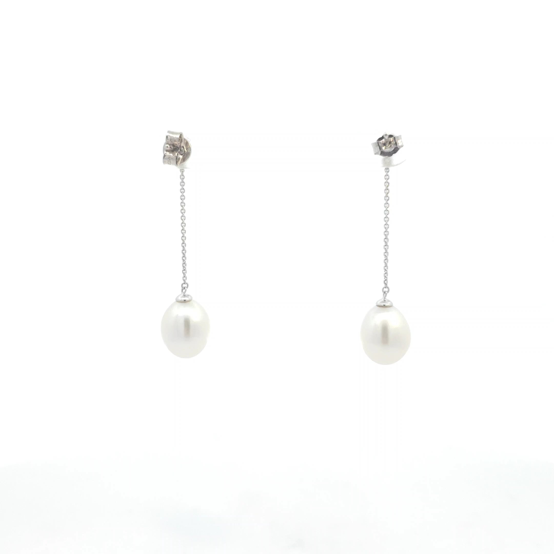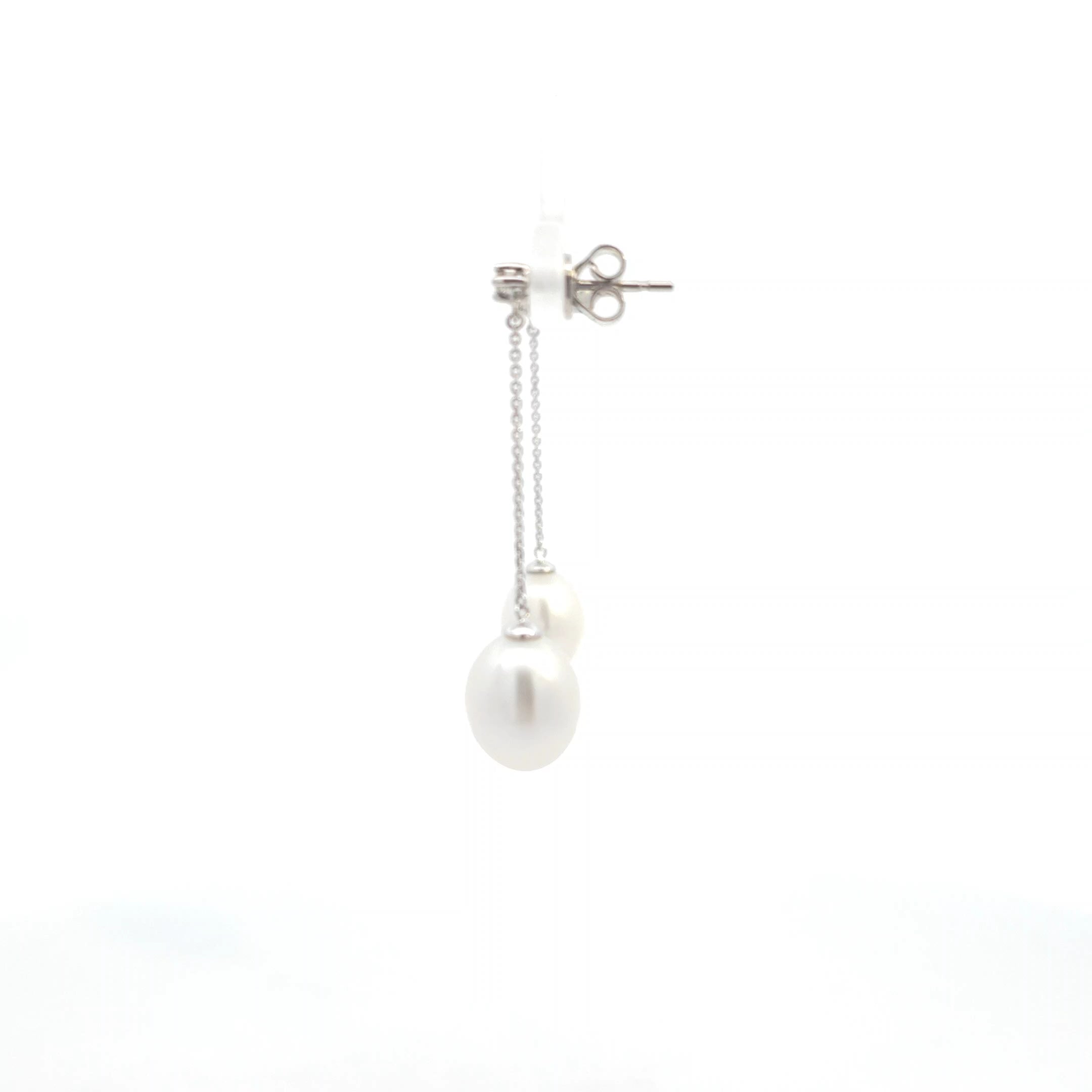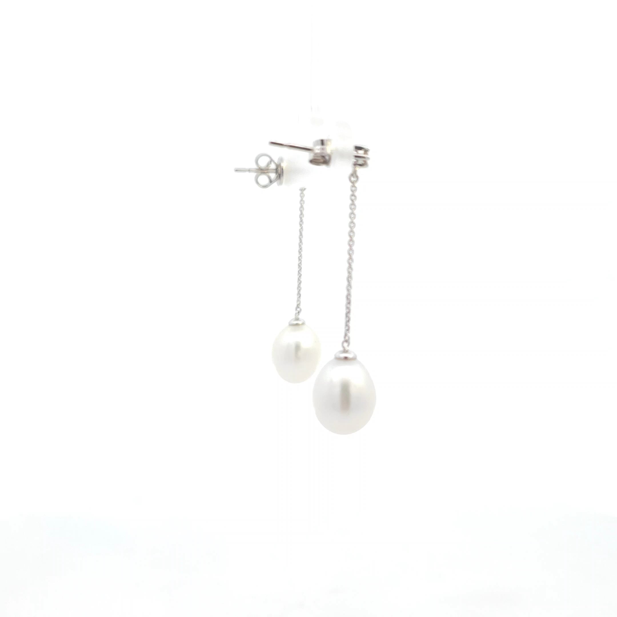 These 9ct white gold hanging earrings feature lustrous freshwater pearls accented with sparkling diamonds, creating an elegant and timeless look. Perfect for adding a touch of class to any outfit, they combine delicate craftsmanship with sophisticated style. Ideal for special occasions or everyday wear, these earrings offer a refined statement of beauty and grace.