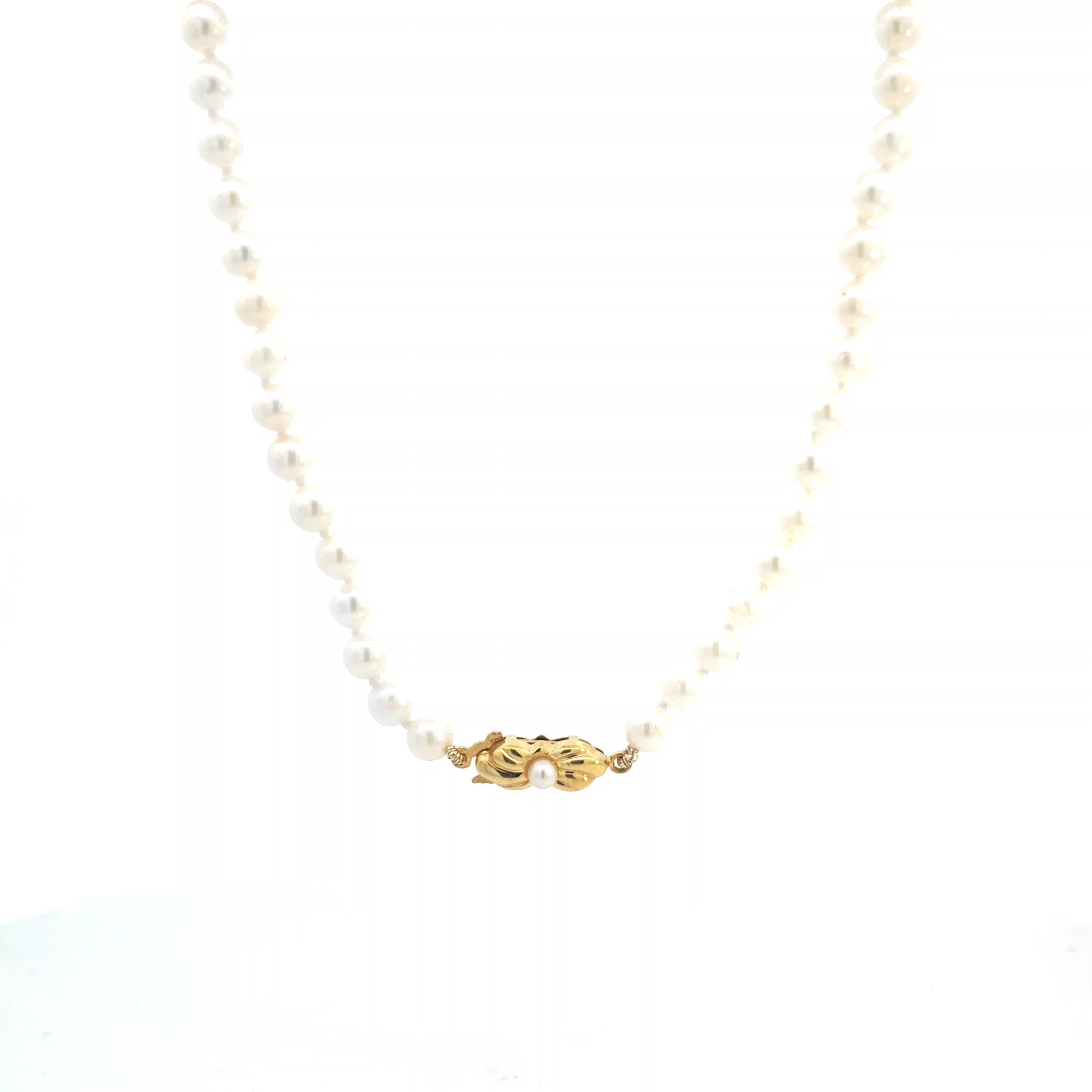 Elevate your style with this exquisite Akoya pearl necklace, featuring lustrous pearls expertly strung for a flawless look. The elegant 9ct yellow gold clasp adds a touch of luxury and ensures secure wear. Perfect for any occasion, this timeless piece combines quality craftsmanship with classic beauty to enhance your collection.