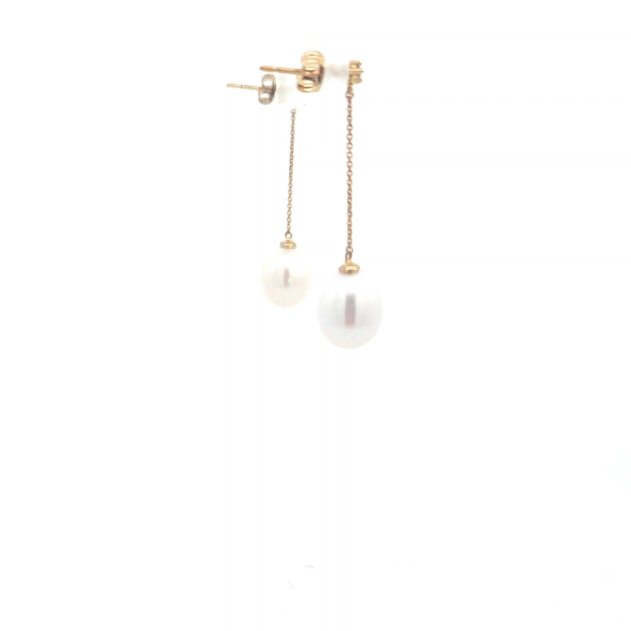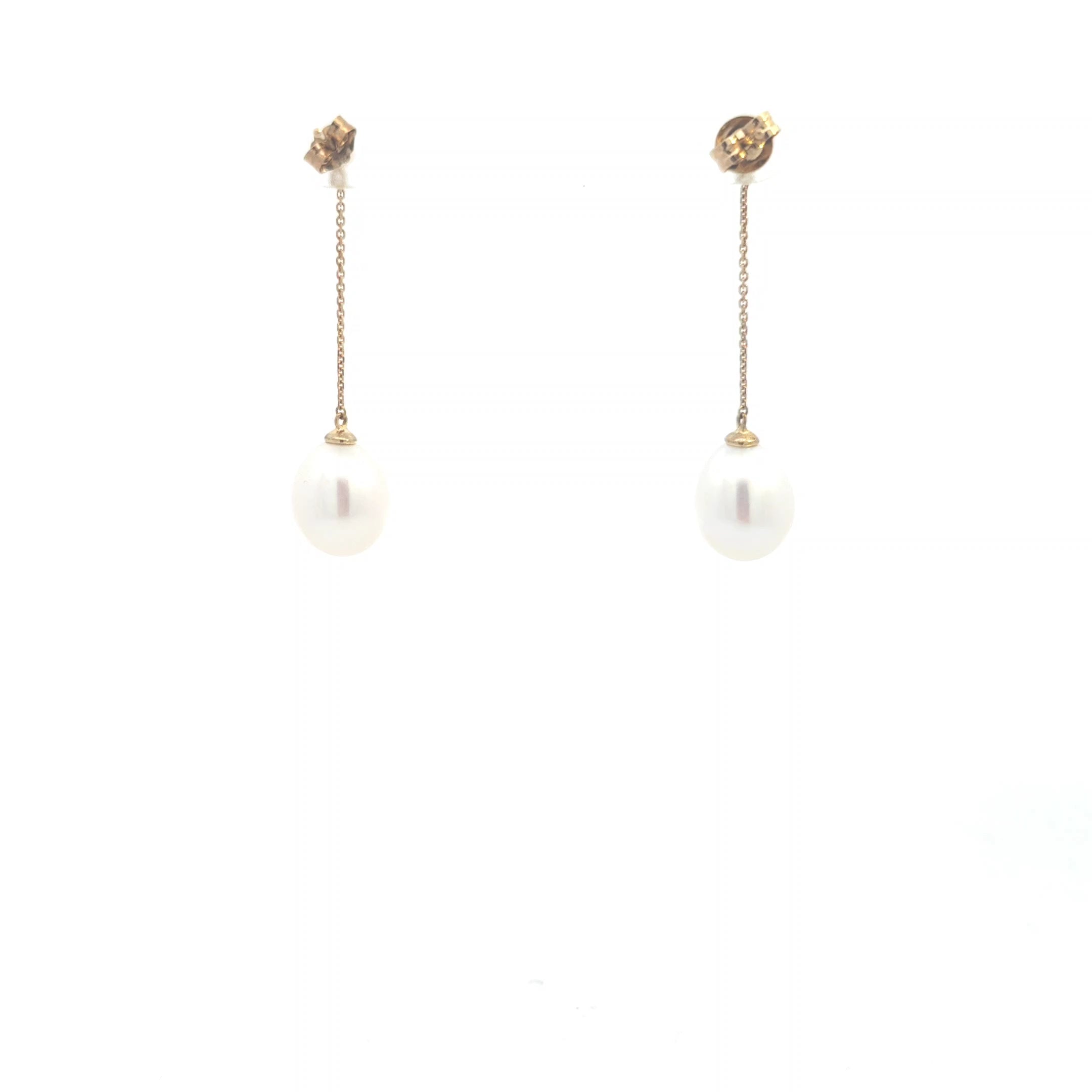 9ct Yellow Gold Hanging Pearl Earrings