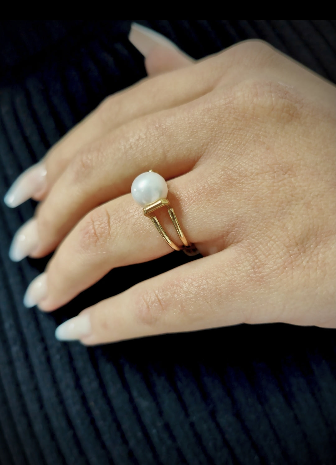 9ct Yellow Gold Split Shank Edison Pearl Ring