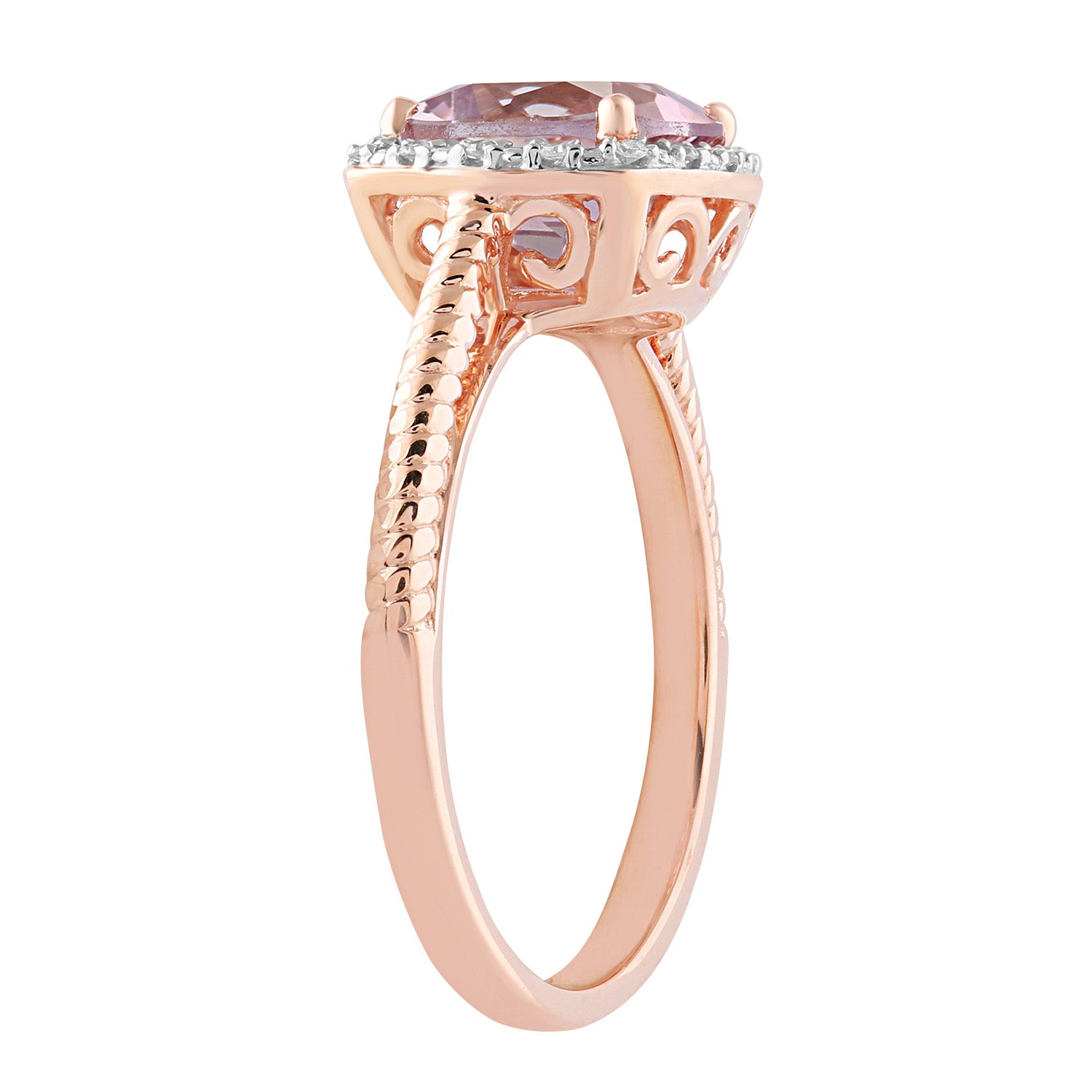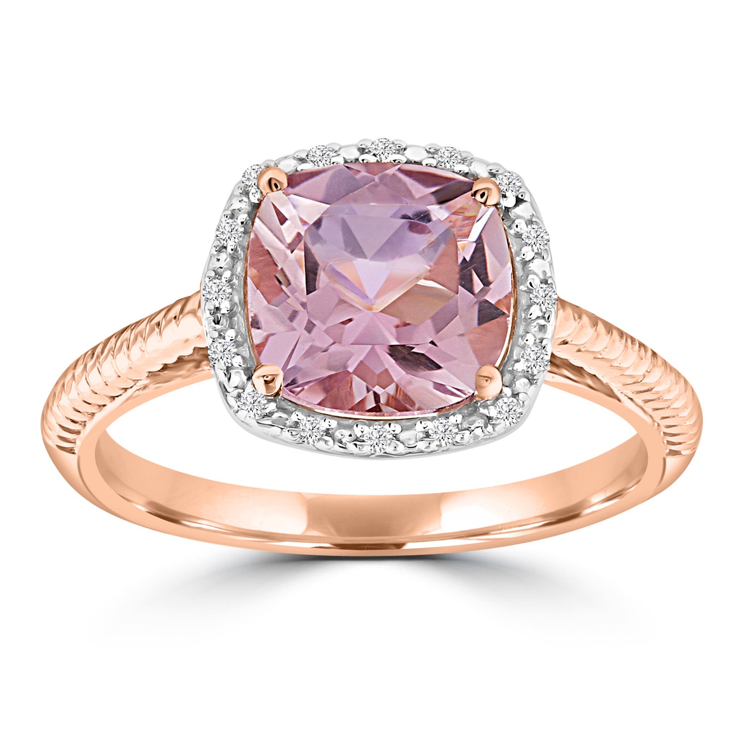 9kt Rose Gold 0.05ct Diamond and Pink Amethyst Ring Size P