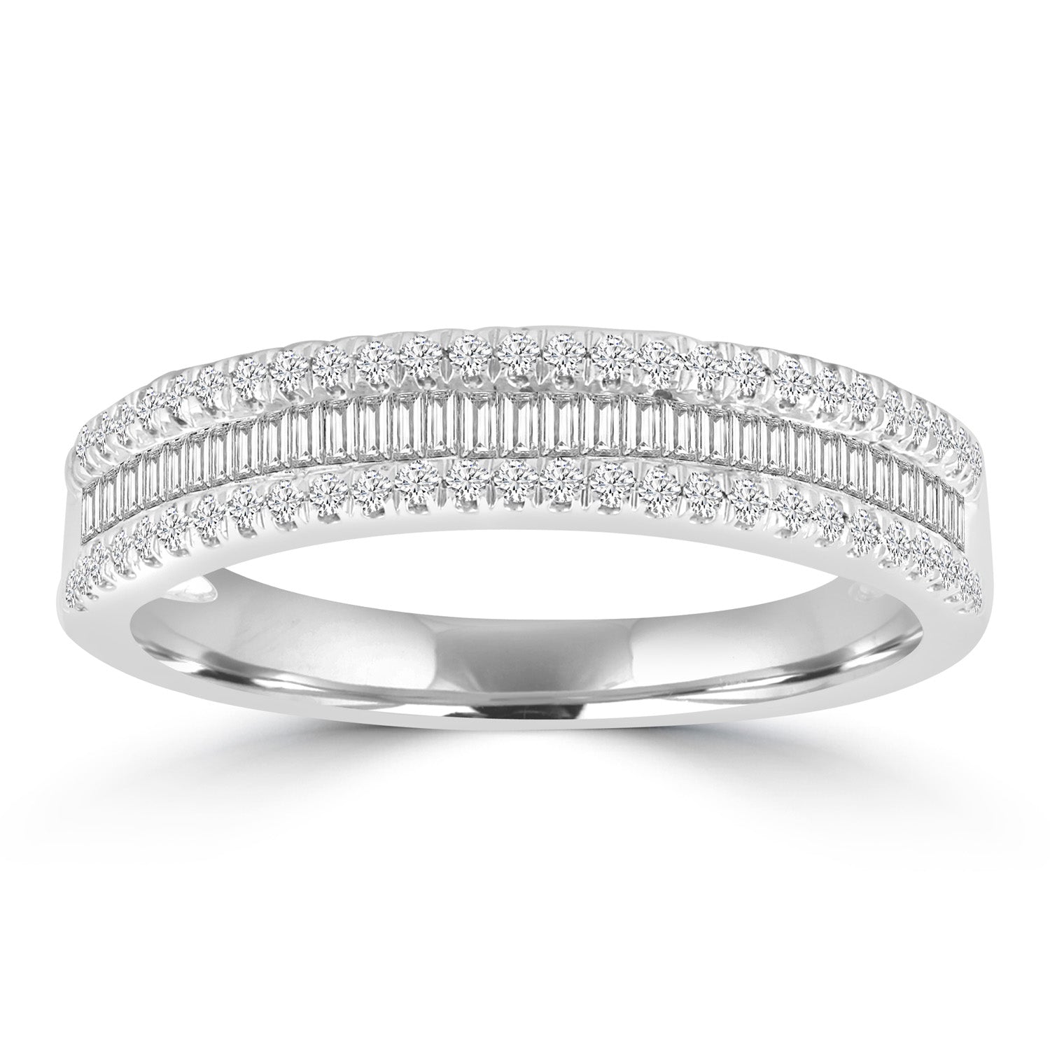 9kt White Gold 3 Row 0.50ct Diamond Ring Size N
