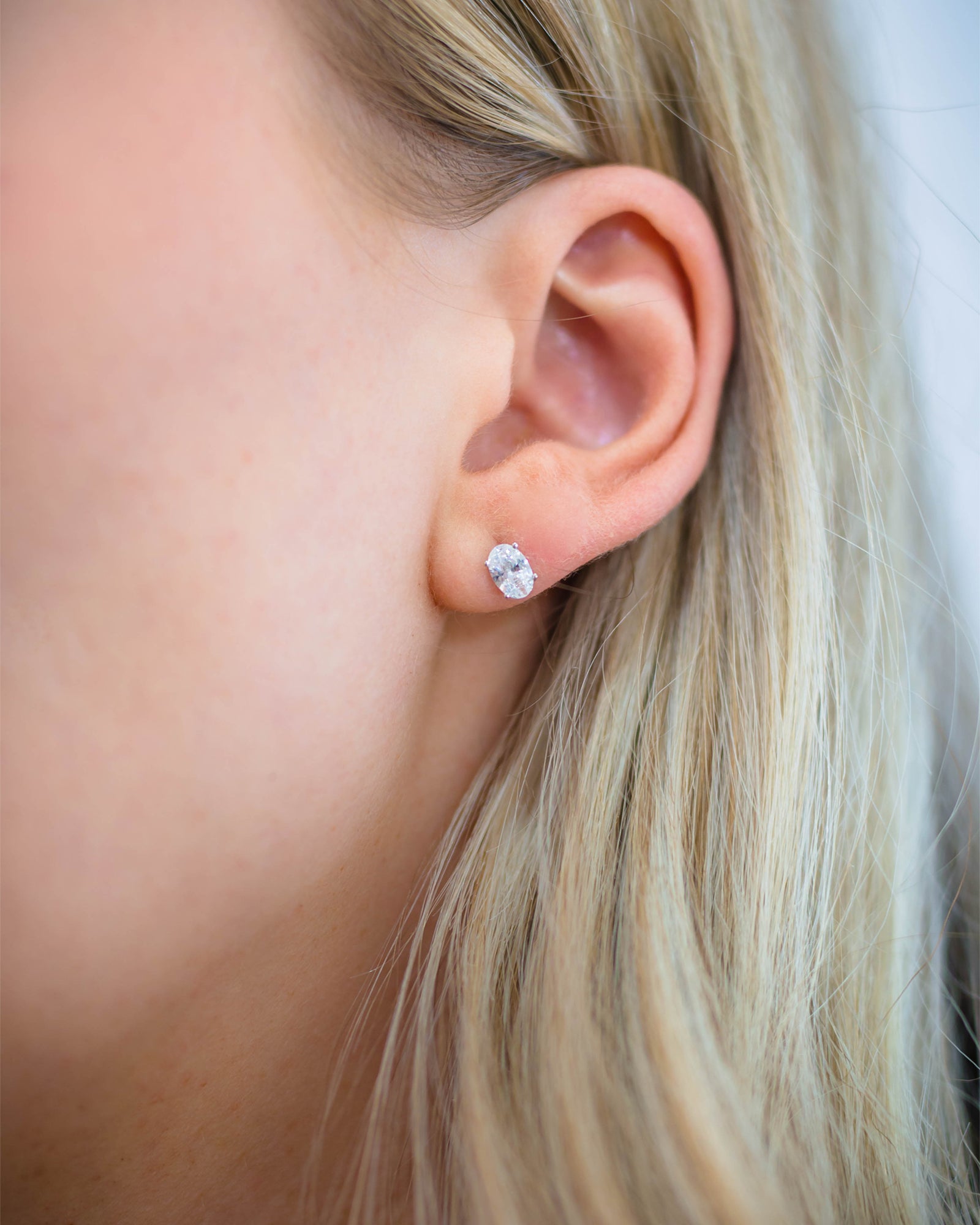 Featuring a claw set 6mm x 4mm oval Cubic Zirconia, it is excellent as a simple stud in your firsts or to add to your ear curations.