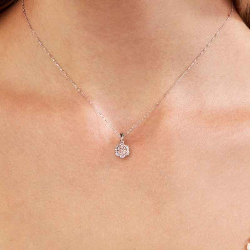 Dainty and elegant, Paisley is a stunning floral inspired necklace featuring glistening petals of Argyle pink diamond and natural white diamonds, set in 18ct Rose and White Gold.