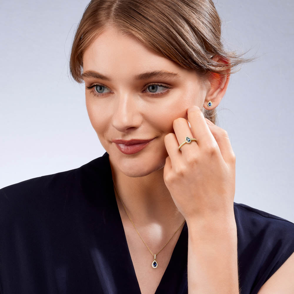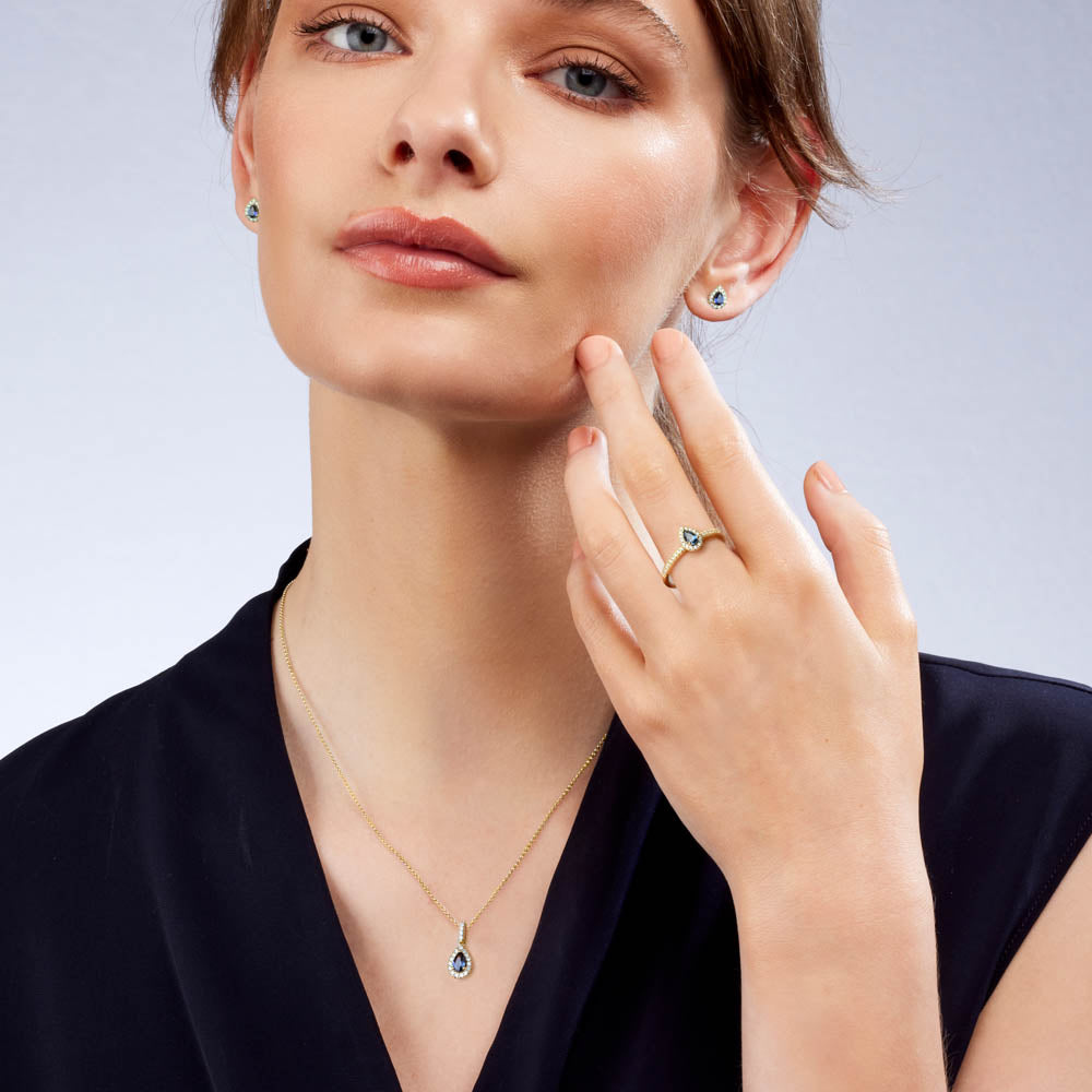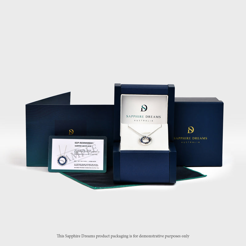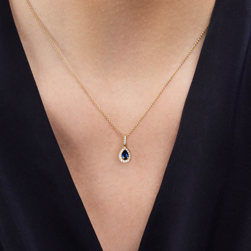 Sophisticated and exquisite, this incredible necklace showcases a stunning pear shaped Blue Australian Sapphire as the centrepiece, haloed by sparkling round White Diamonds, set on an 18ct Yellow Gold chain, a durable and long lasting metal.