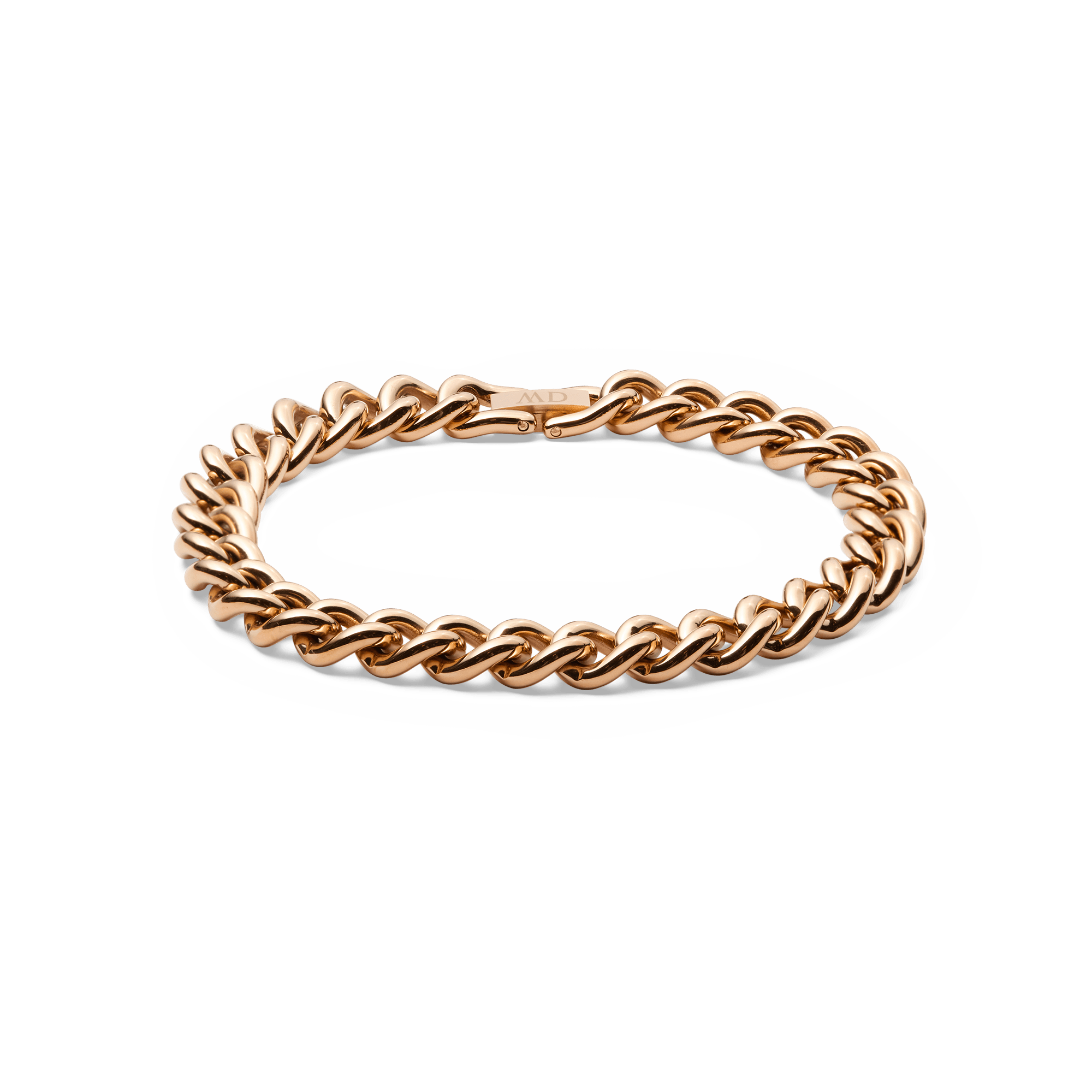 This chunky chain bracelet is an everyday classic that elevates any look. A jewellery must-have with bespoke dimensions, each rounded silver ring was designed with a custom width, length, and diameter of the threads. With a fold-over clasp and luxurious, yet comfortable weight, the bracelet’s clever construction allows you to remove rings to adjust for the length of your wrist—beautiful to wear with other accessories, but speaks for itself as a stand-alone piece.