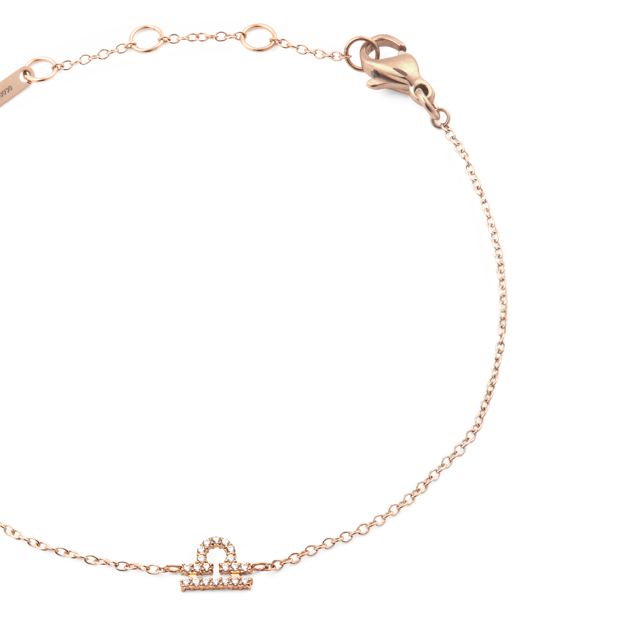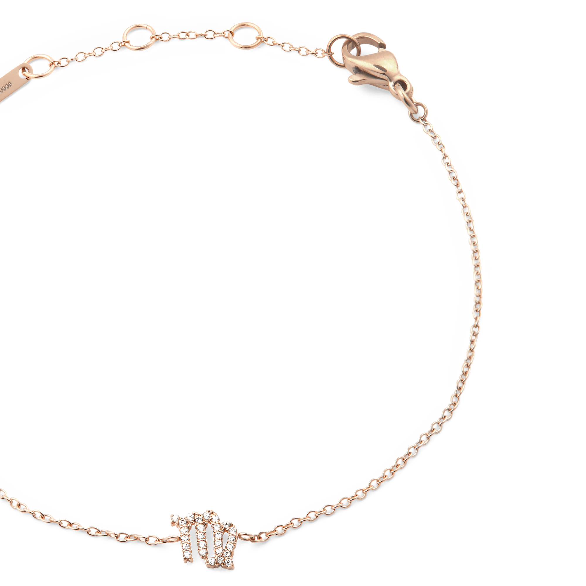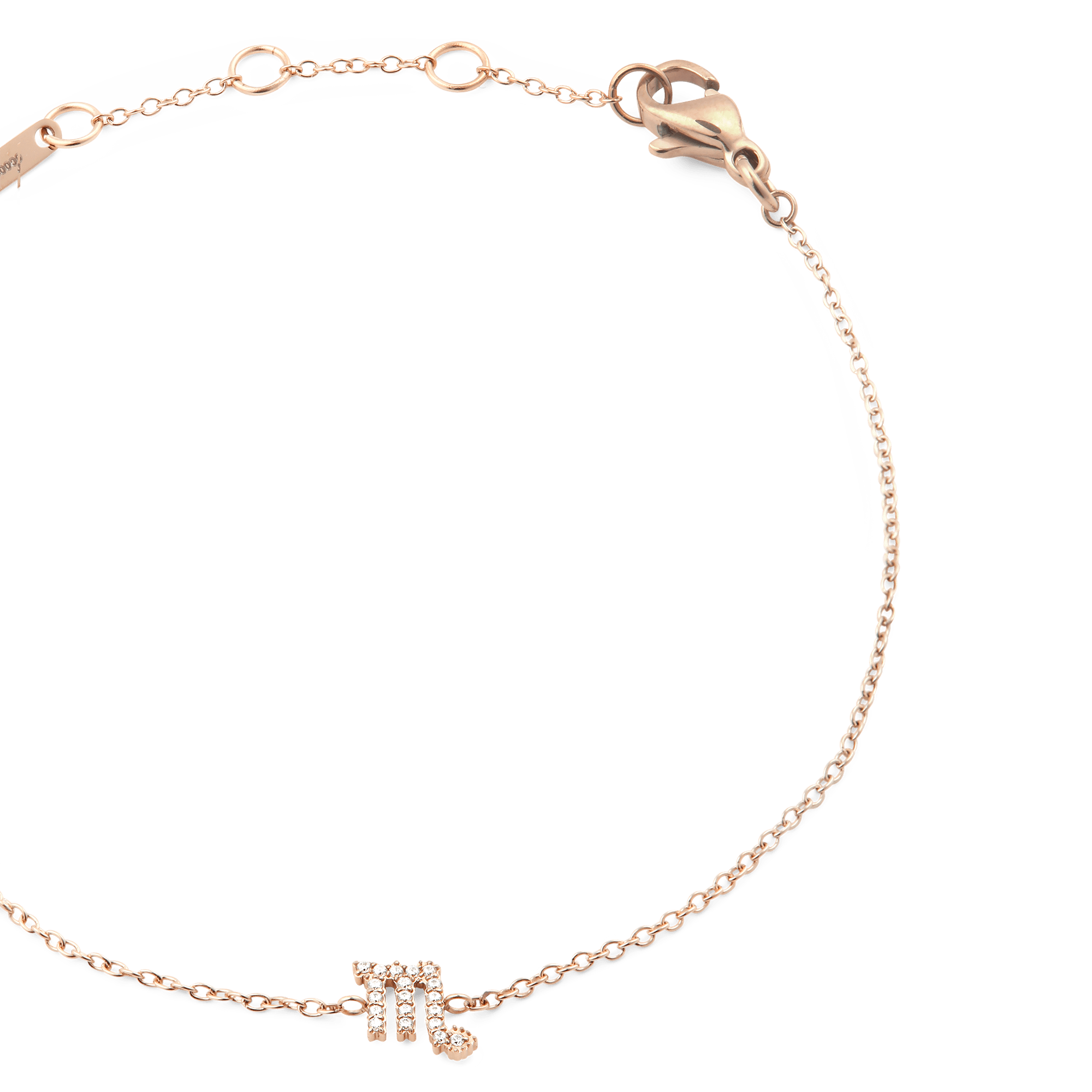 Take this as a sign from the stars: it’s time to add some celestial energy to your look. This rose gold bracelet features a thin, elegant chain with a fixed crystal zodiac pendant. Every crystal on the pendant is hand-set using a claw setting technique, and the chain comes equipped with sizing rings for an adjustable length.