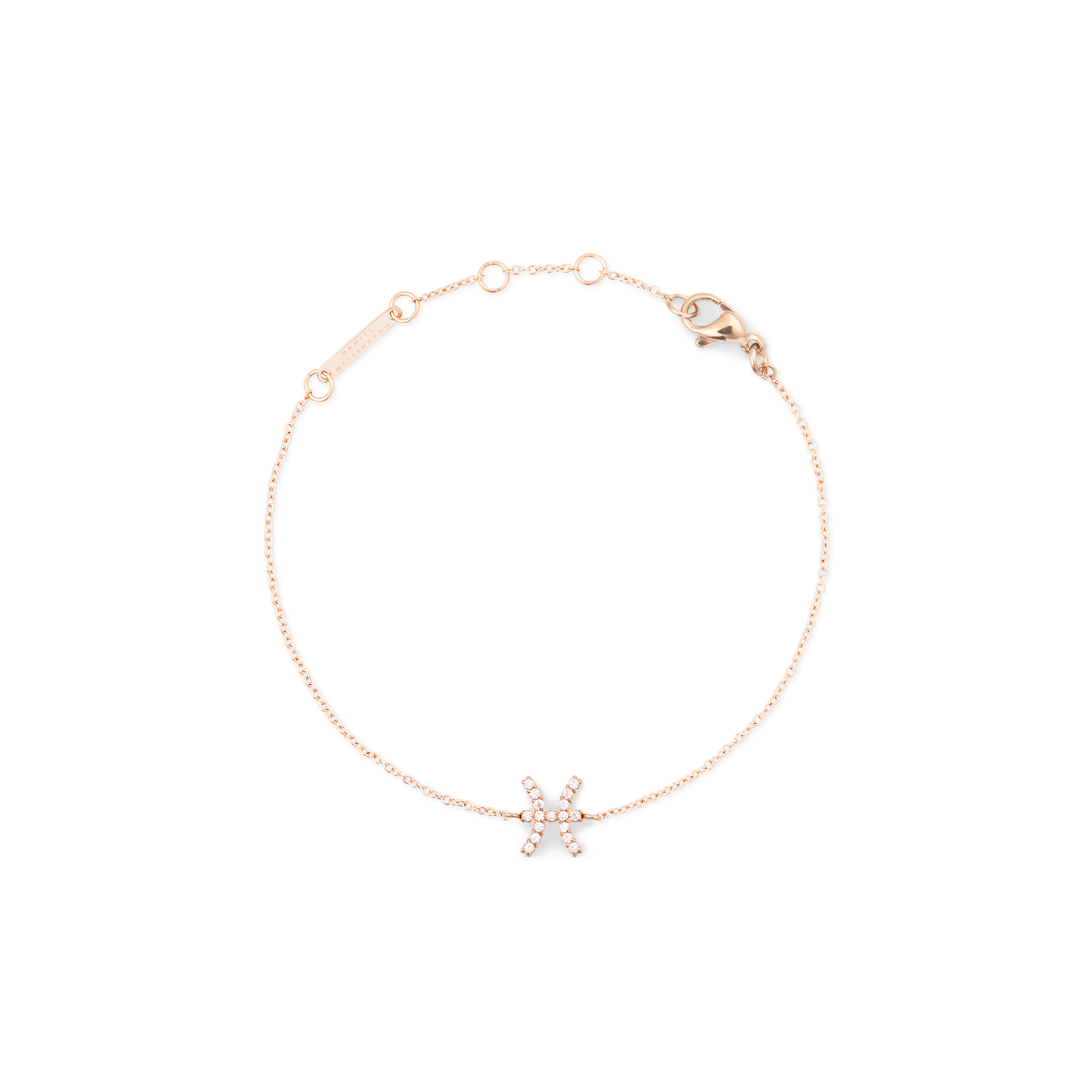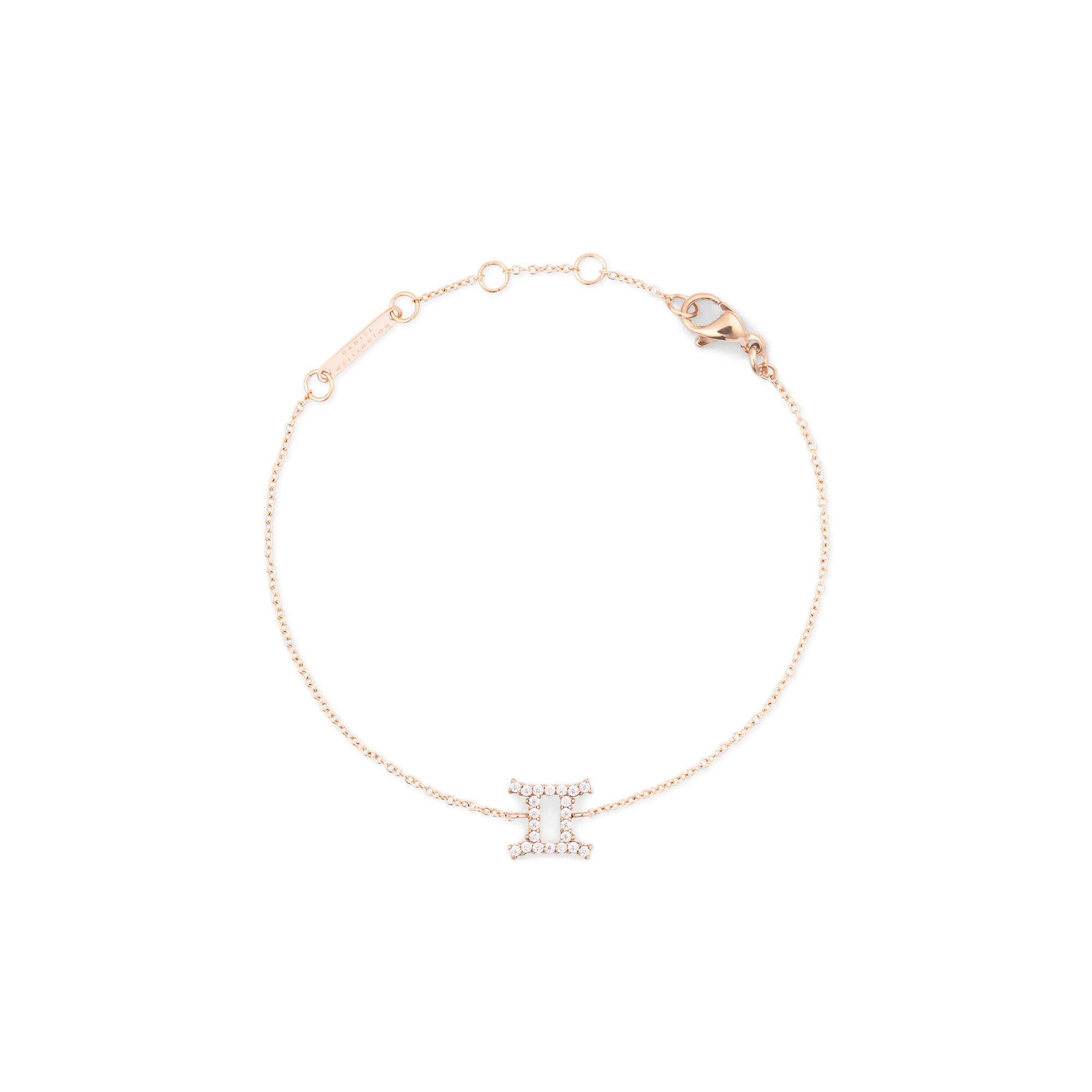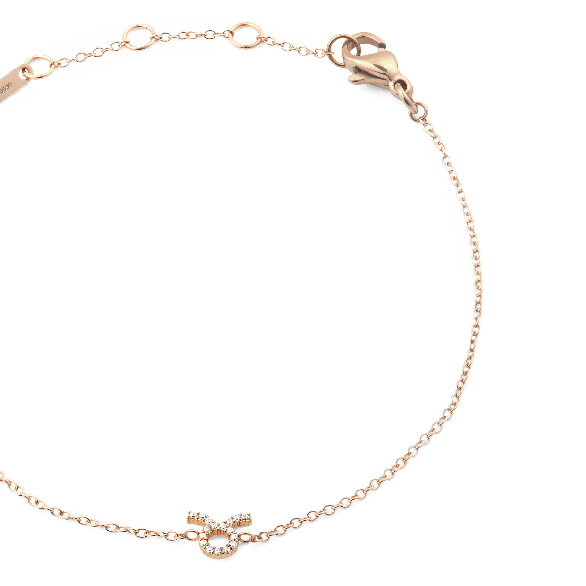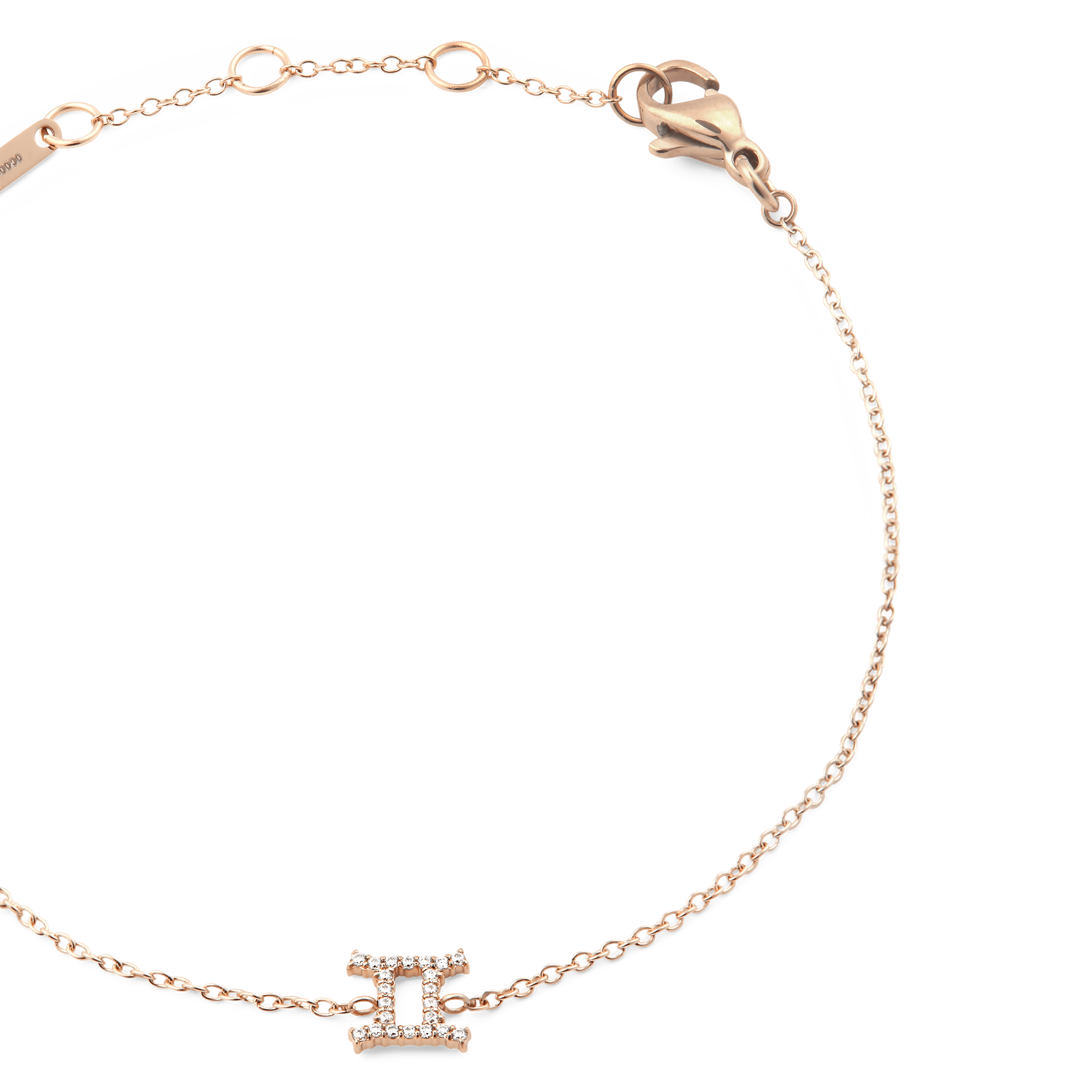 Take this as a sign from the stars: it’s time to add some celestial energy to your look. This rose gold bracelet features a thin, elegant chain with a fixed crystal zodiac pendant. Every crystal on the pendant is hand-set using a claw setting technique, and the chain comes equipped with sizing rings for an adjustable length.