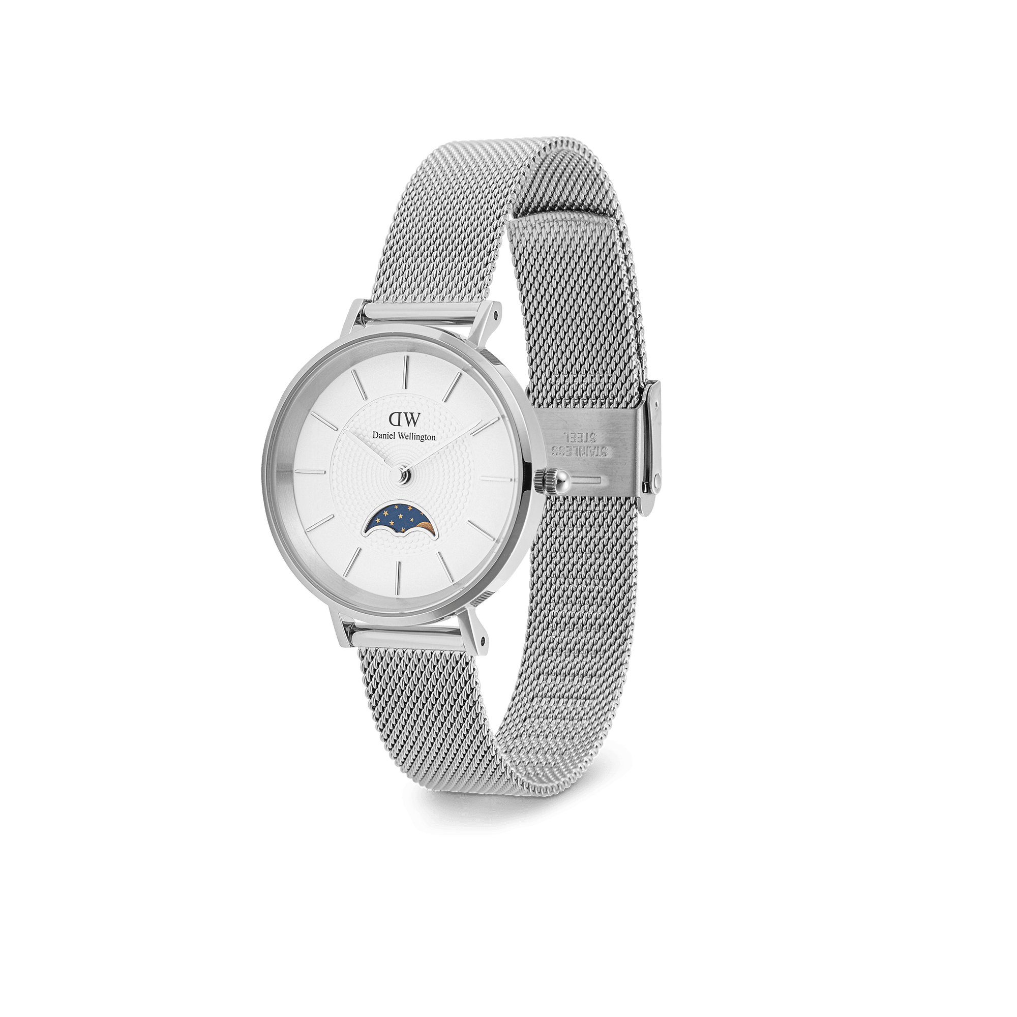 Stay in tune with the moon’s cycles. Petite Lune features a unique moon-phase sub-dial, which keeps track of where we are in the month, spinning from new to full moon and back again. The silver mesh strap is interchangeable, so it can match your style day or night—under the sun or the stars.