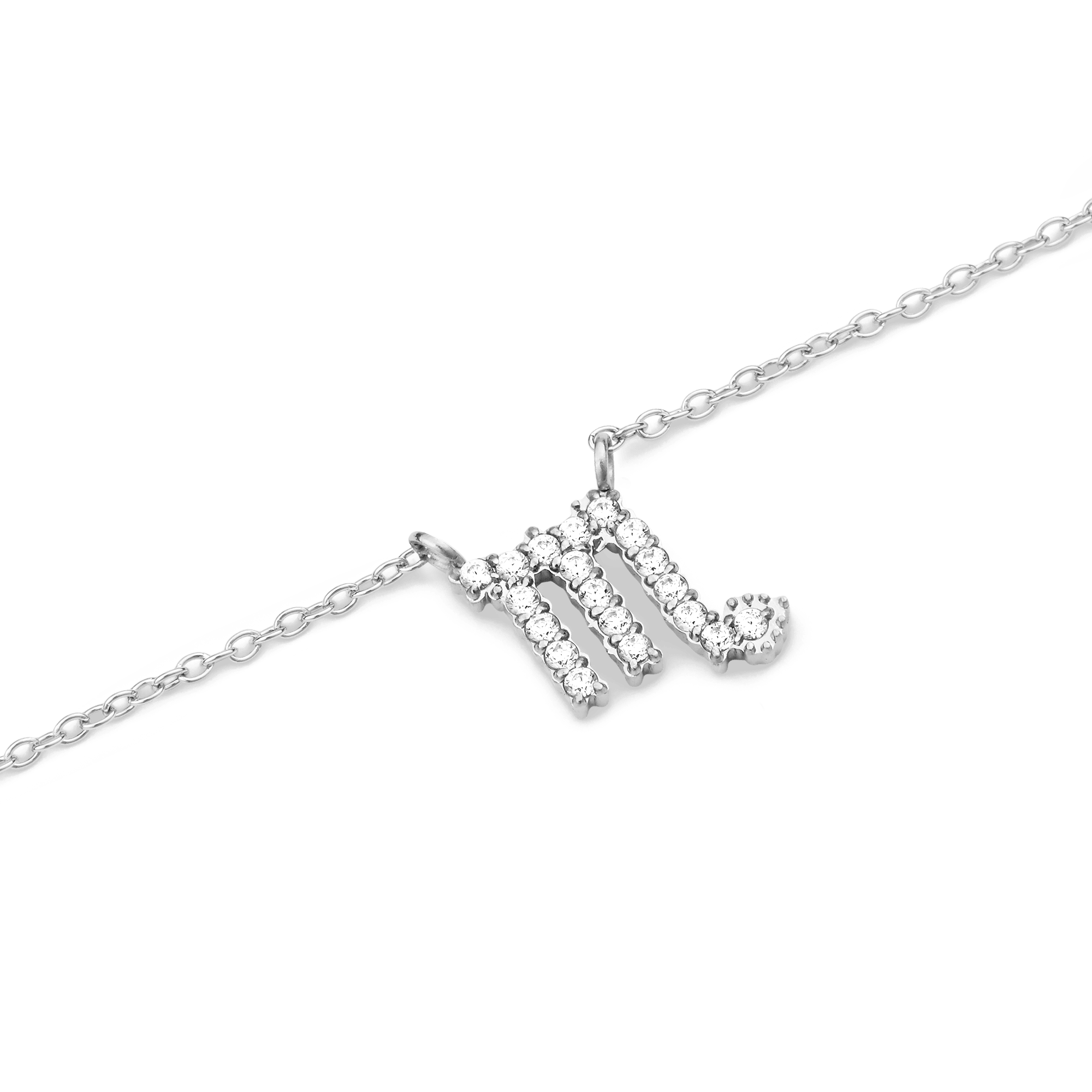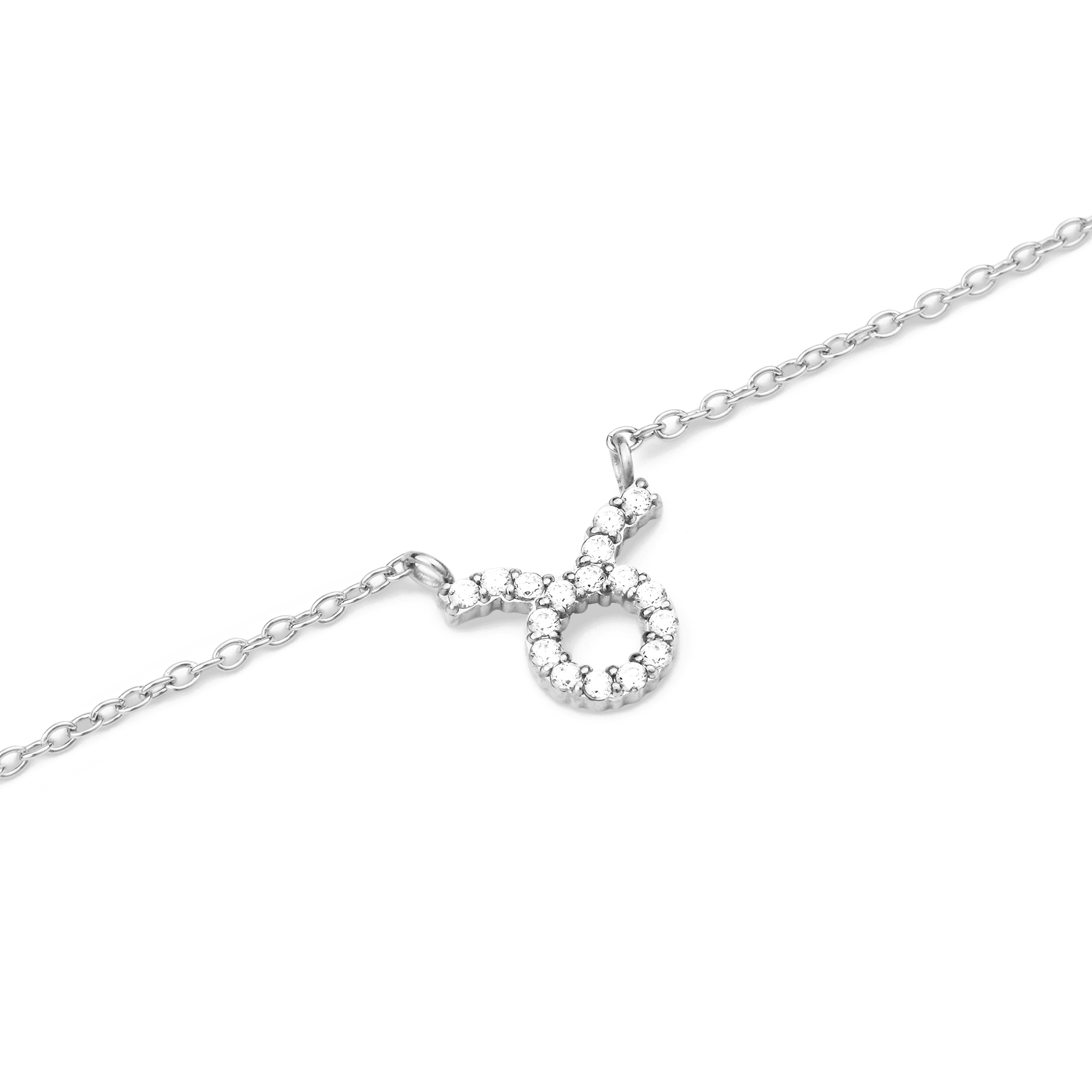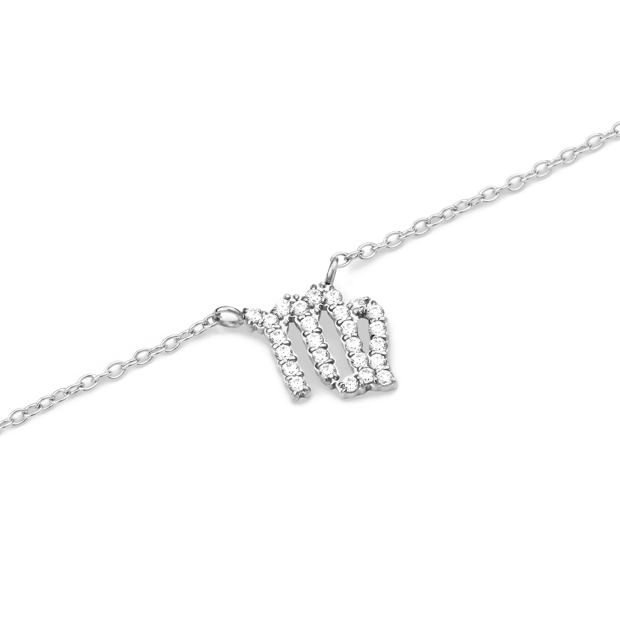 Take this as a sign from the stars: it’s time to add some celestial energy to your look. This silver necklace features a thin, elegant chain with a fixed crystal zodiac pendant. Every crystal on the pendant is hand-set using a claw setting technique, and the chain comes equipped with sizing rings for an adjustable length.