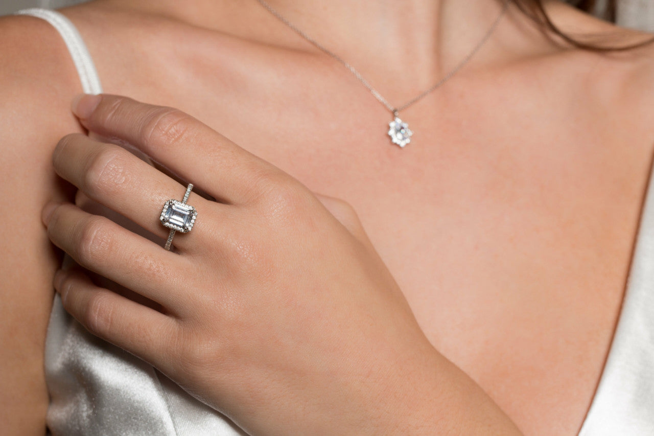 Vintage inspired the Violet ring by Georgini is as lust worthy as they come. Showcasing a 1.5 ct 8mm x 6mm Emerald cut Cubic Zirconia of the highest quality this stunning stone is surrounded by a dazzling halo and perfect pave band. Wear it with the Anne band to make the most fabulous of sets. Crafted in Rhodium plated 925 Sterling Silver.