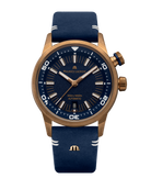 Engineered for adventure yet refined for everyday wear, the Maurice Lacroix Aikon Automatic 42mm blends robust functionality with elevated design. Housed in a brushed and polished stainless steel case, this timepiece features a clean blue lacquered dial accented by rhodium-plated indexes and hands with white Super-LumiNova for enhanced legibility. The bronze-tipped second hand adds an elegant touch, while the sapphire crystal with double anti-reflective coating ensures clarity in all conditions. Built for performance, the watch is water-resistant to 30 ATM, features a screwed crown, and is powered by the reliable ML115 automatic movement with a 38-hour power reserve. Two interchangeable straps—dark blue rubber and dark blue nylon—both with pin buckles and the Maurice Lacroix signature, allow for versatile styling. Finished with a special engraved case back and the brand’s Easy Change system, this Aikon is a rugged yet elegant companion, built for life without limits.
