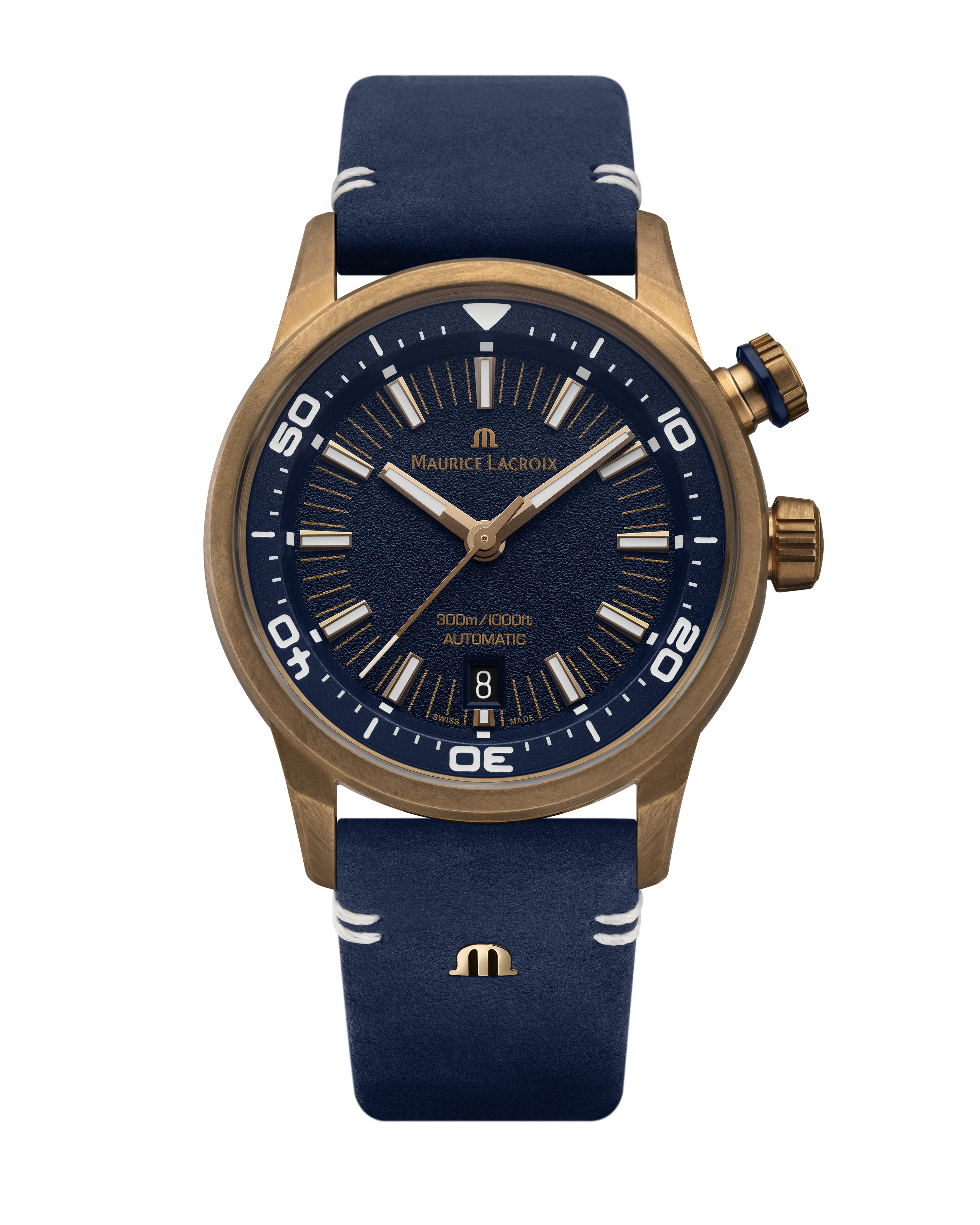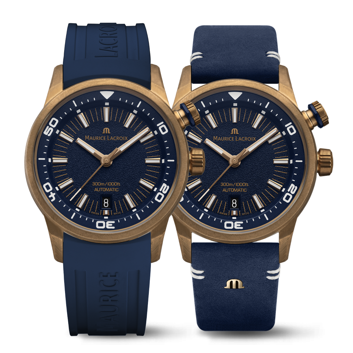 Bracelet/Strap 1: Dark blue rubber strap featuring the 'Maurice Lacroix' name