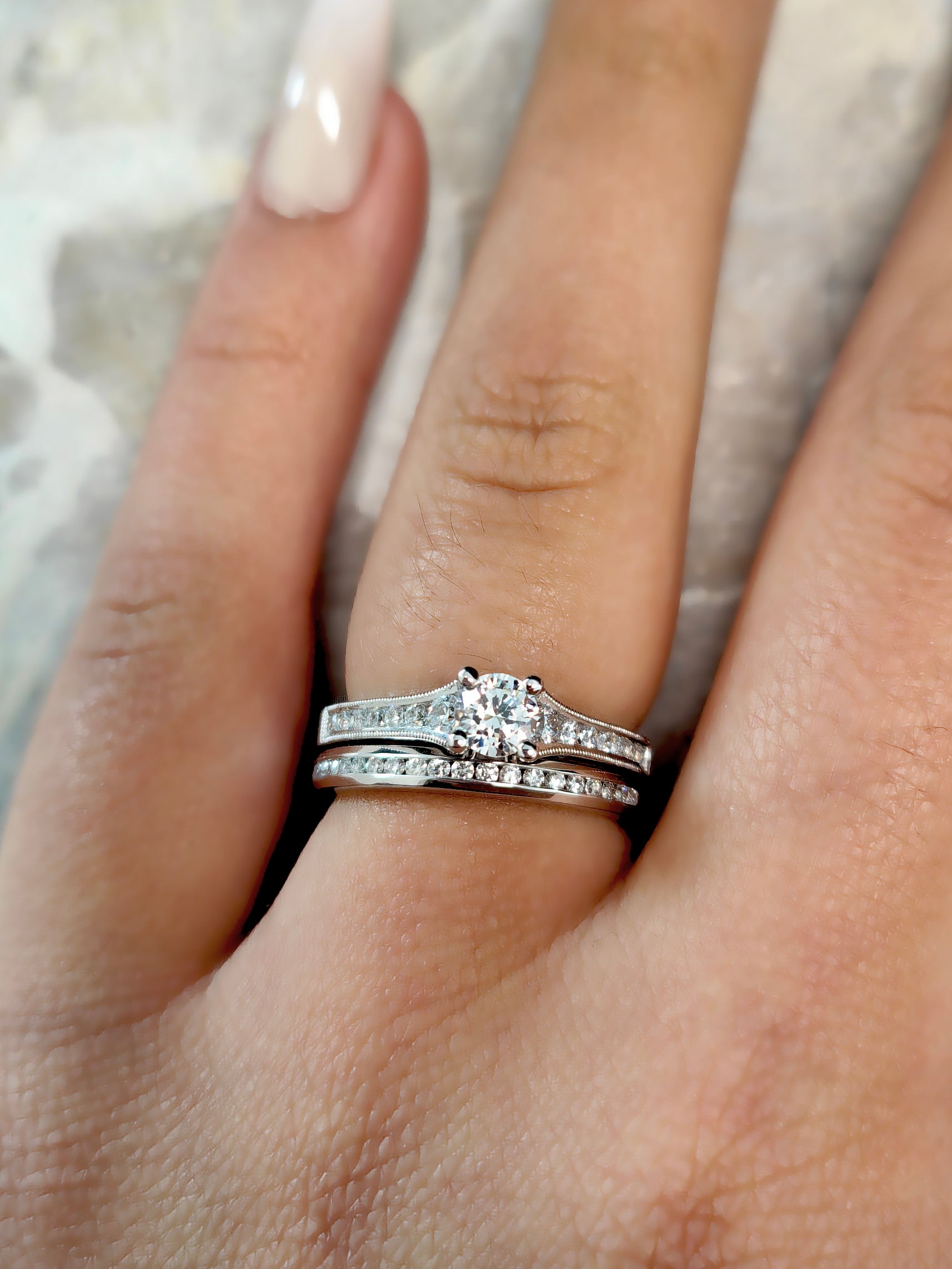 Celebrate eternal love with this exquisite gold and diamond wedding ring, a timeless symbol of devotion and elegance. Crafted from lustrous gold, its sleek band is adorned with dazzling diamonds that catch the light with every movement, radiating brilliance and sophistication. Designed for those who cherish refined beauty, this ring effortlessly combines classic charm with modern allure. Let this breathtaking piece be a sparkling reminder of your forever promise.