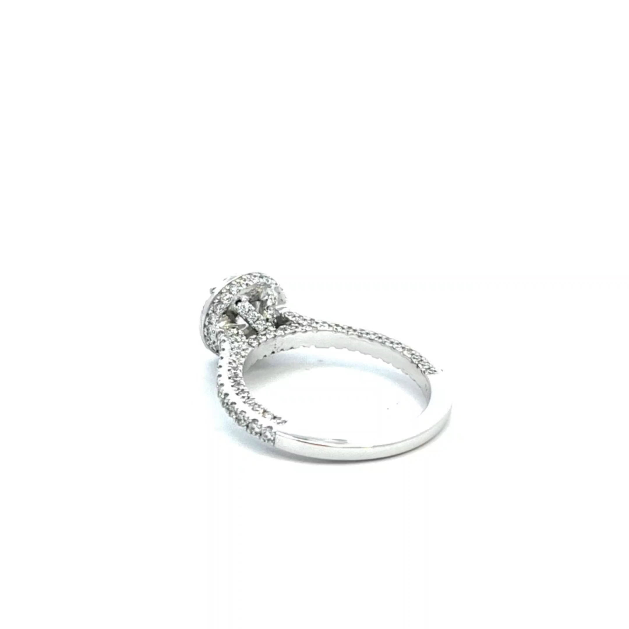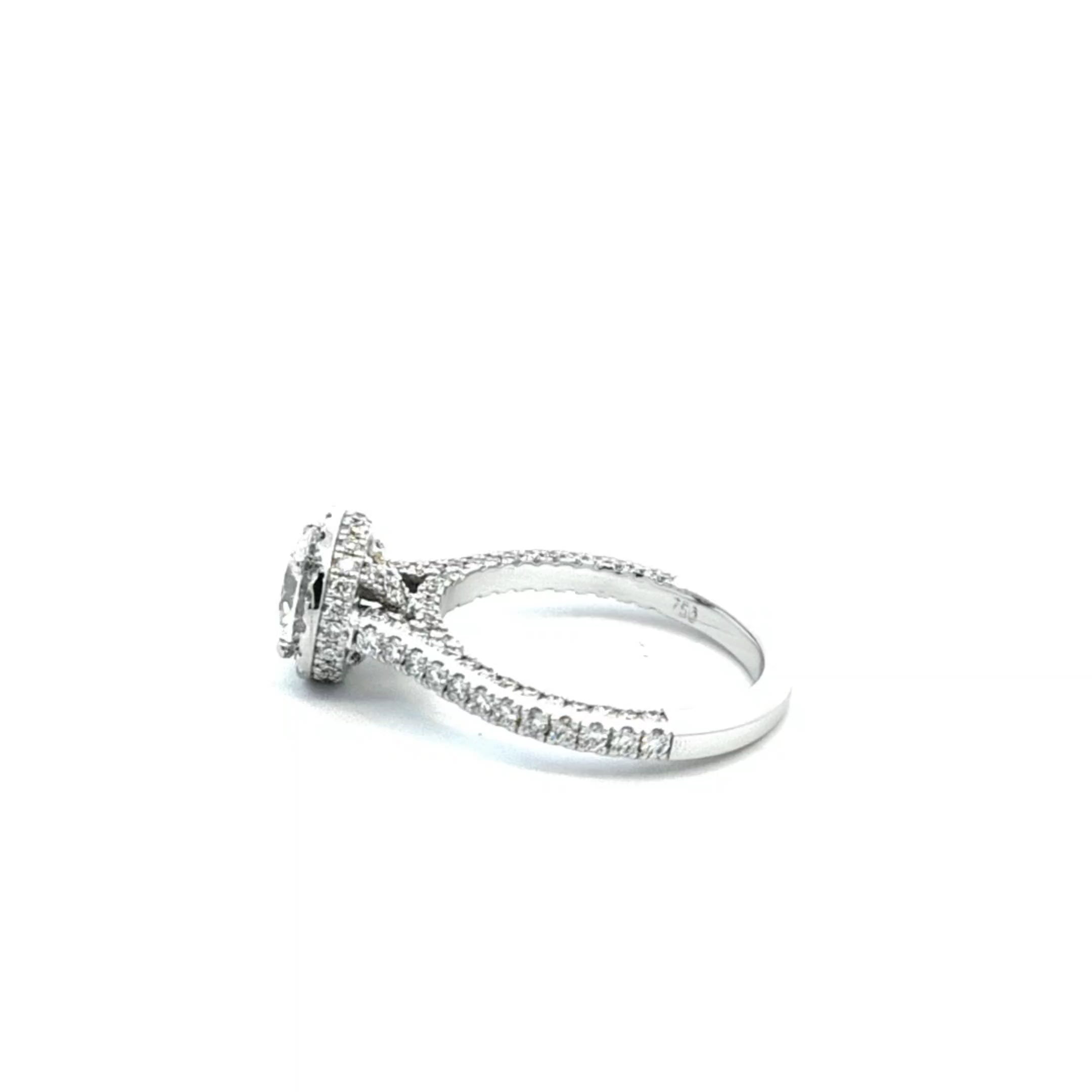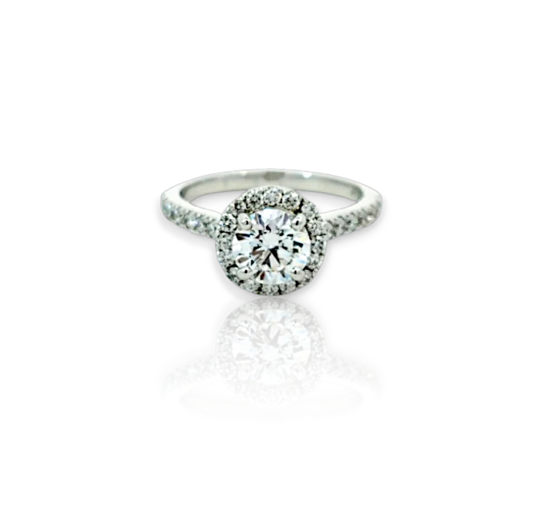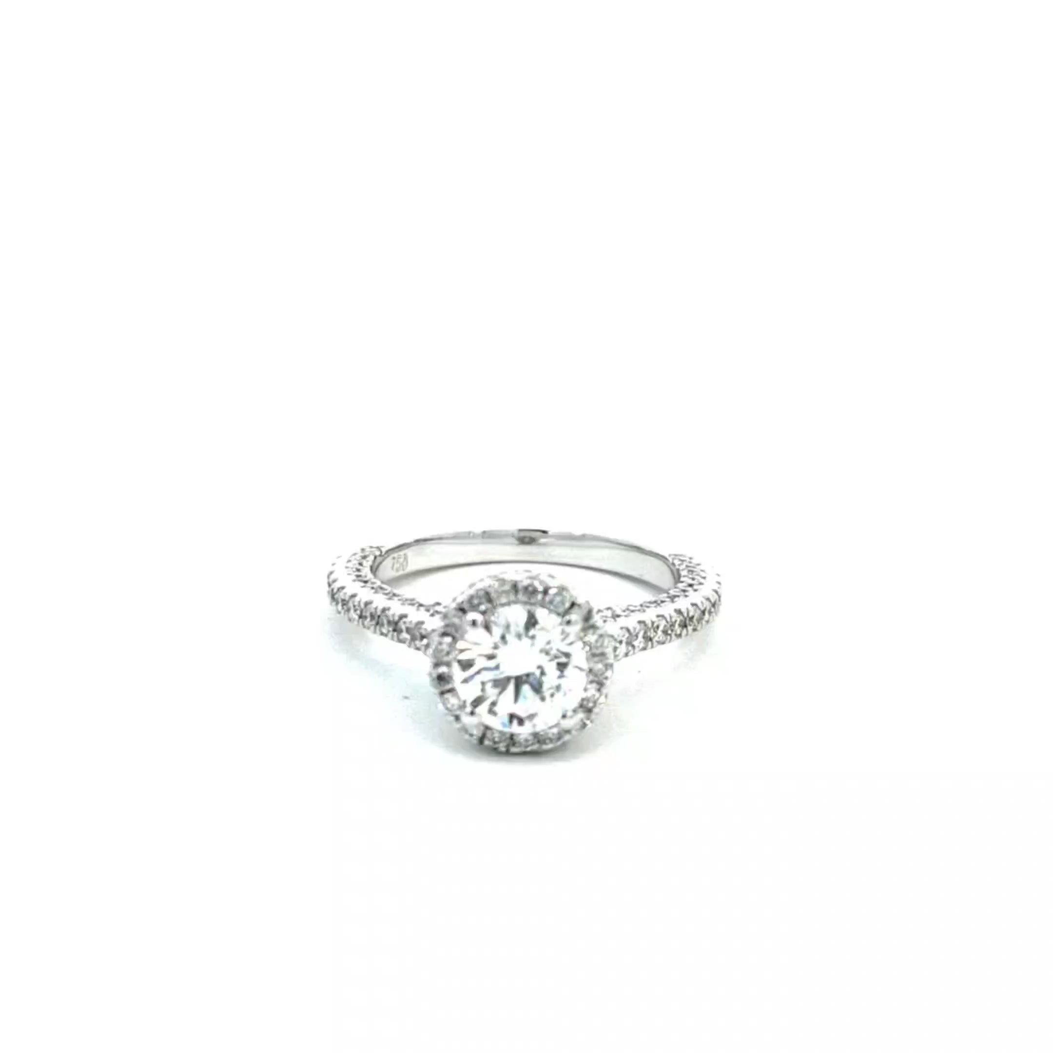 Unleash a symphony of sparkle with the Radiance Burst Ring. A brilliant round diamond explodes with light, surrounded by a halo of dazzling pave diamonds. The delicate, diamond-studded band amplifies the brilliance, creating an unforgettable statement piece. Let the Radiance Burst Ring illuminate your love story with its breathtaking shine.
