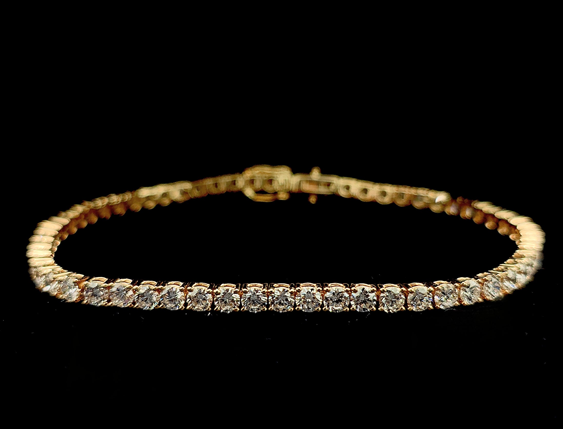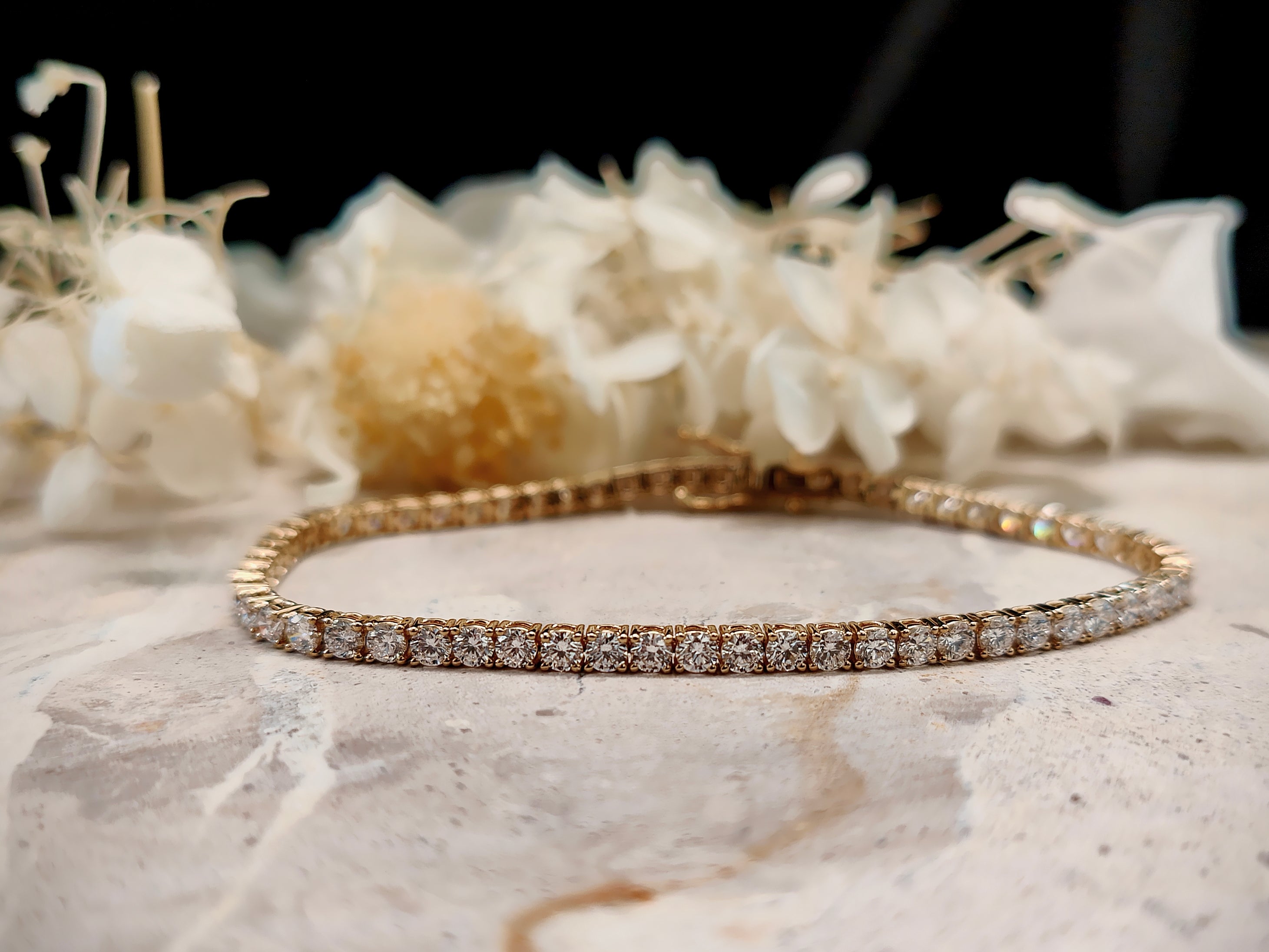 Add a touch of elegance to your wrist with our 14ct yellow gold lab grown diamond tennis bracelet. Featuring DE color and VS clarity, this bracelet sparkles with natural beauty and is a sustainable choice for your jewelry collection. Elevate your style with this stunning piece!