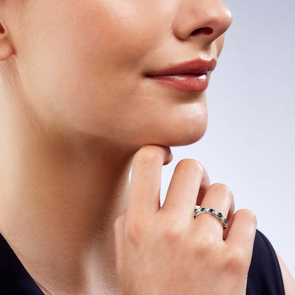 Luxurious and elegant, Octavia features incredible round cut Blue Australian Sapphires and dazzling natural White Diamonds, on an 18ct White Gold band, a durable and long lasting metal. This piece is the ultimate exquisite gift for a loved one.