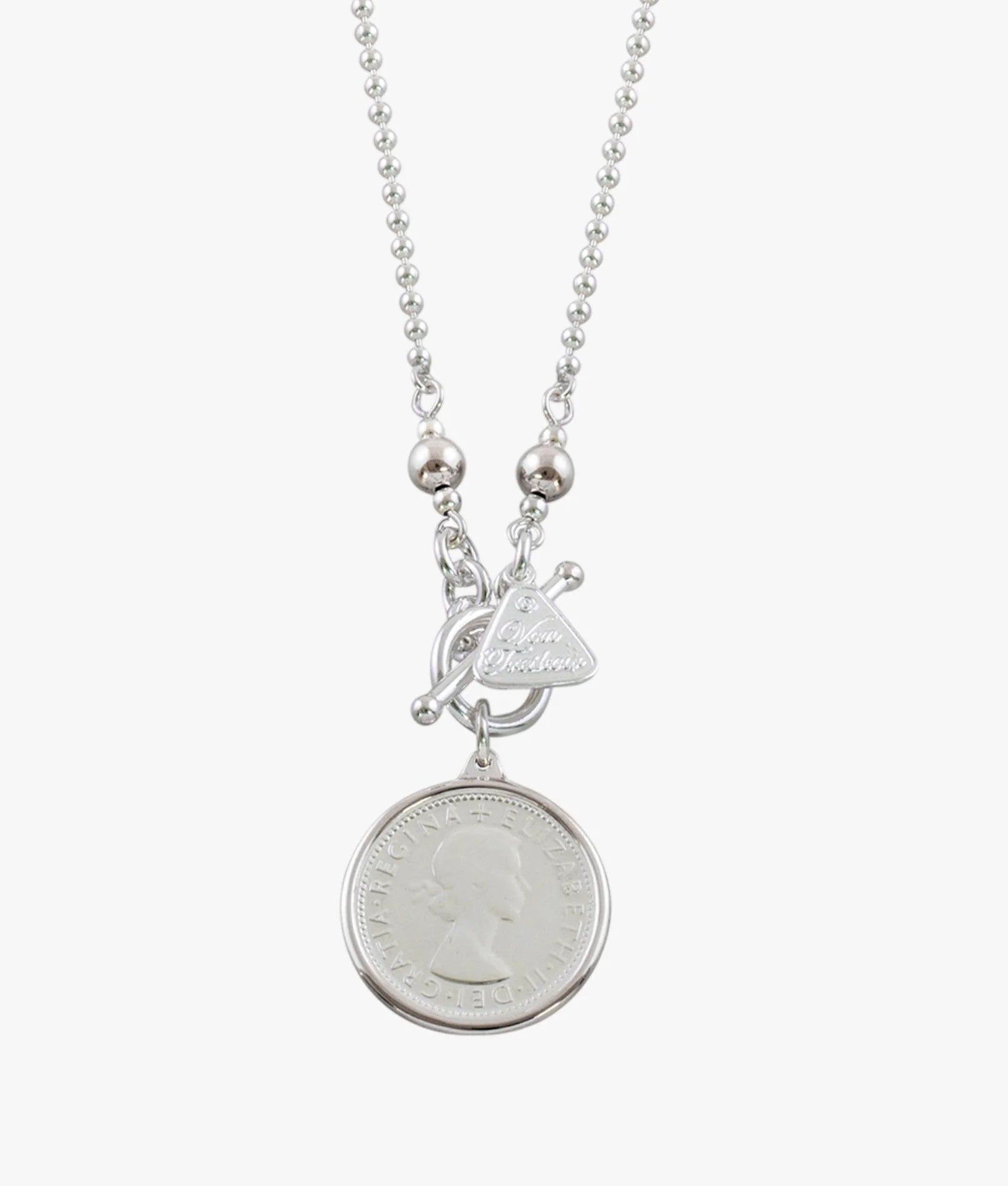 From Von Treskow's iconic coin collections, this shorter necklace captures an elegant feel. An authentic Australian shilling coin is suspended from a silver ball chain.