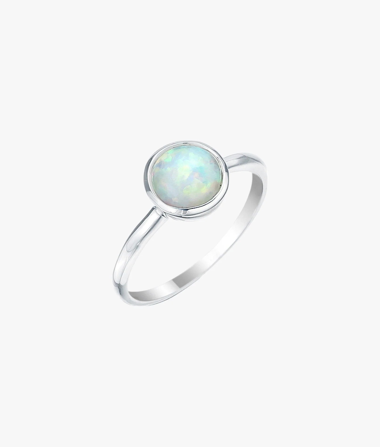 The round 8mm Czelline Opal ring - Iridescent colour in fine sterling silver. Watch the hues and colours of Czelline Opal change as light flickers off its smooth surface.