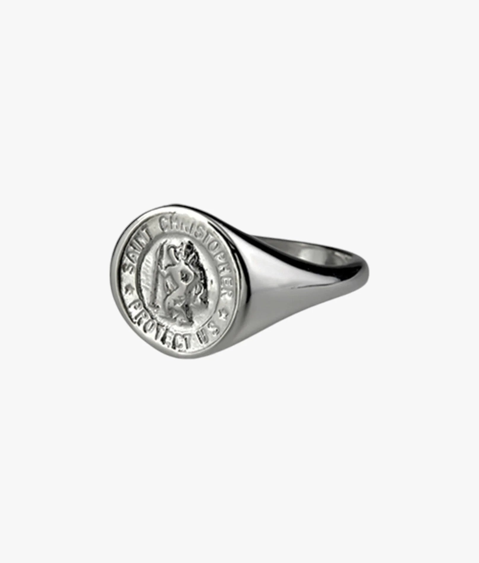 The Saint Christopher signet ring. Saint Christopher is best known as the patron saint of travel. The medal is worn for protection during your travels.
