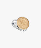 From Von Treskow's iconic coin collections, the authentic Australian threepence coin ring with yellow gold plated top. This piece includes a real Australian threepence coin encased within yellow gold plate and set into its band.
