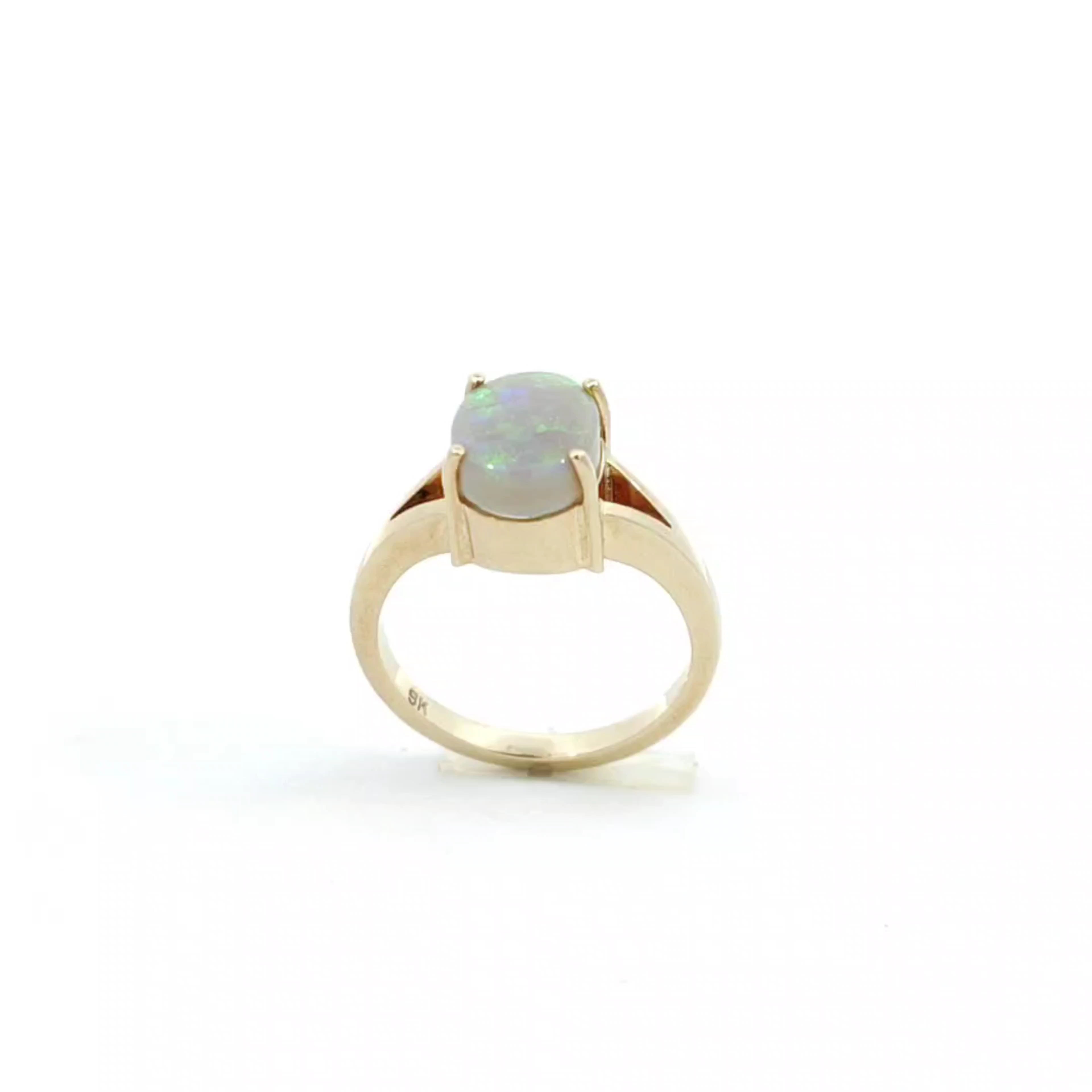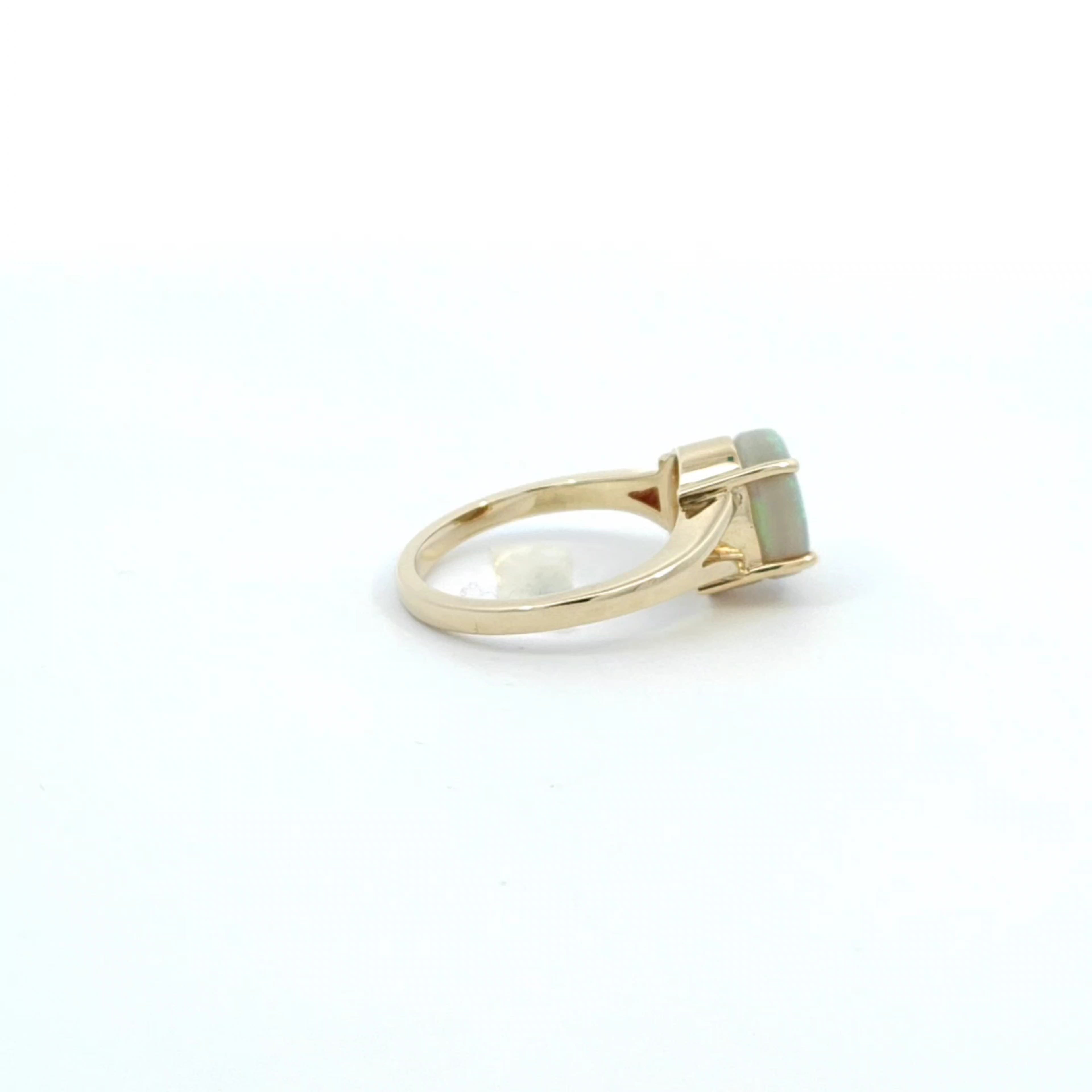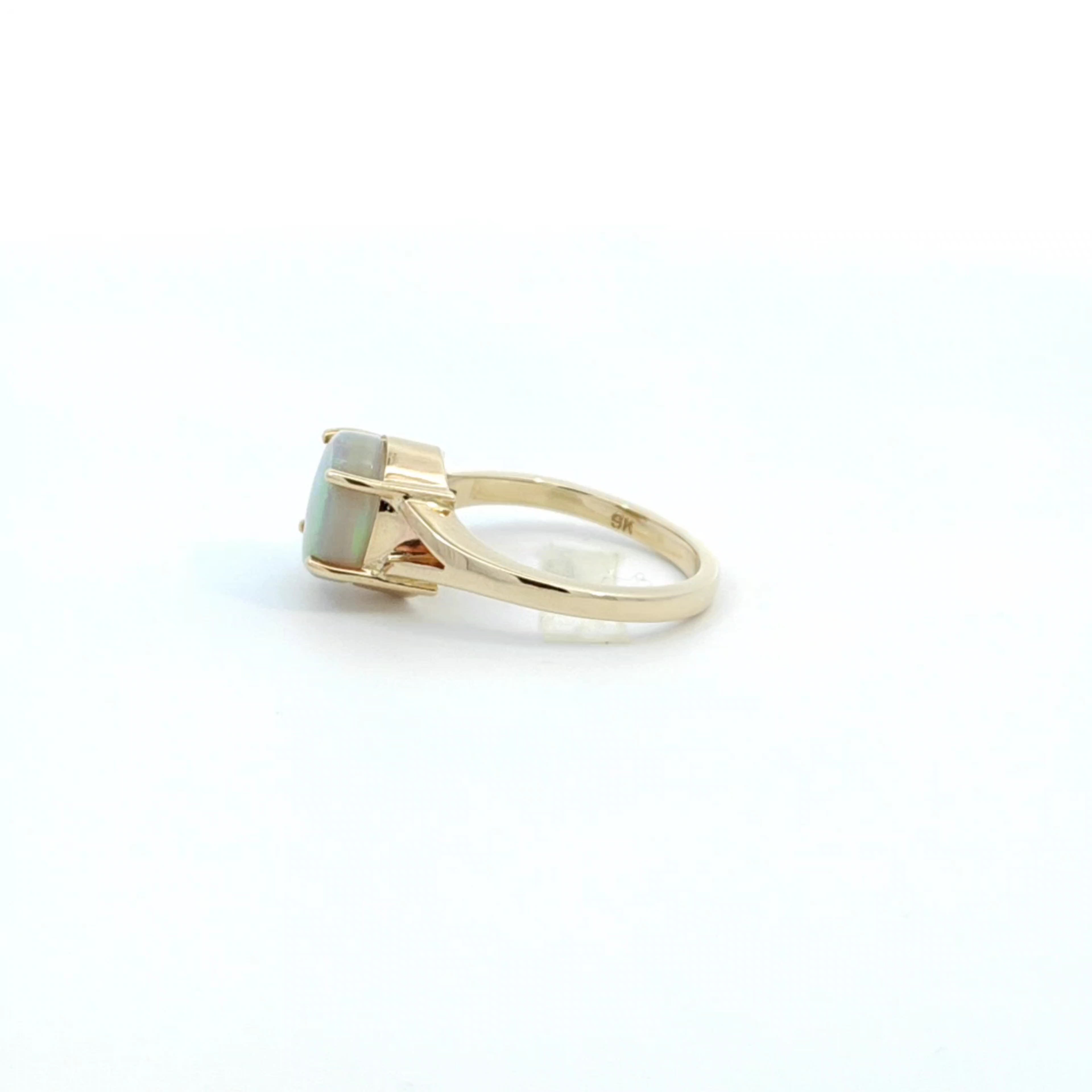 Discover the beauty of this elegant opal ring, designed to captivate and inspire. The stunning opal centerpiece shimmers with a kaleidoscope of colors, making it a perfect statement piece for any occasion. Crafted with precision, this ring combines timeless elegance with modern flair.