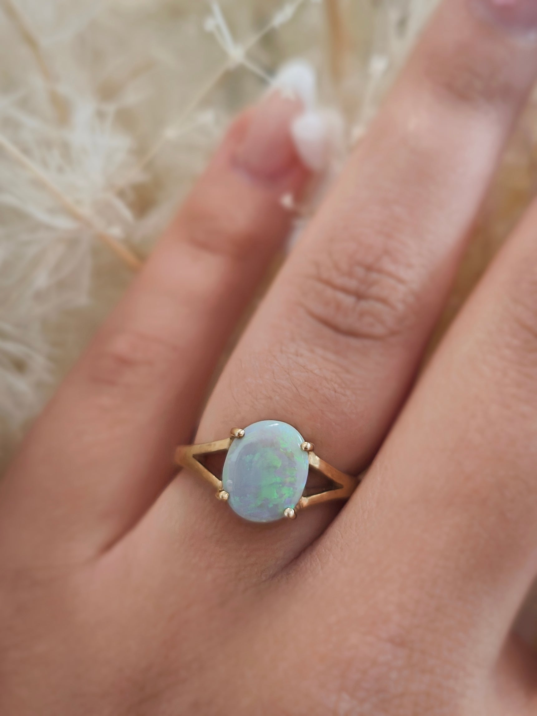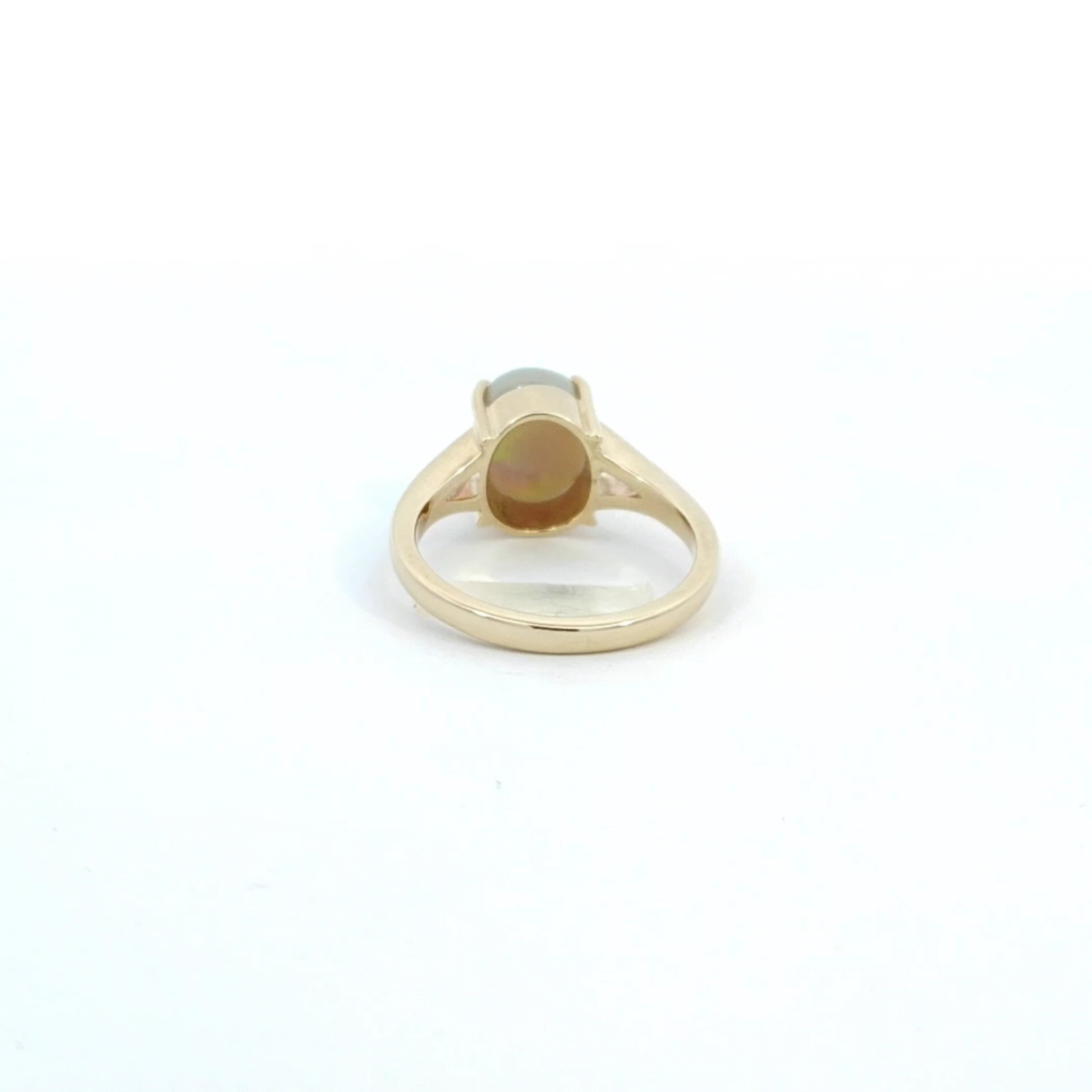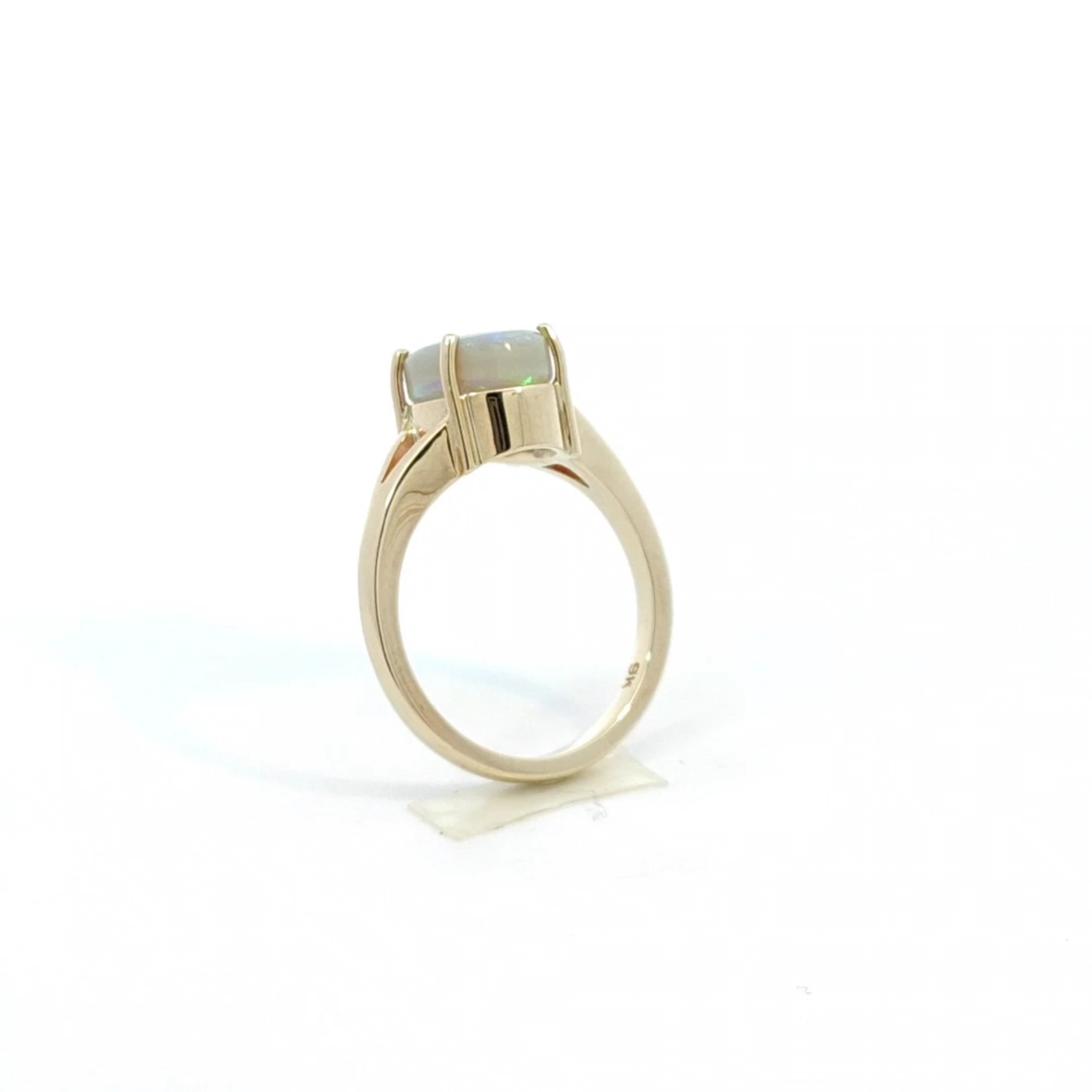 Discover the beauty of this elegant opal ring, designed to captivate and inspire. The stunning opal centerpiece shimmers with a kaleidoscope of colors, making it a perfect statement piece for any occasion. Crafted with precision, this ring combines timeless elegance with modern flair.